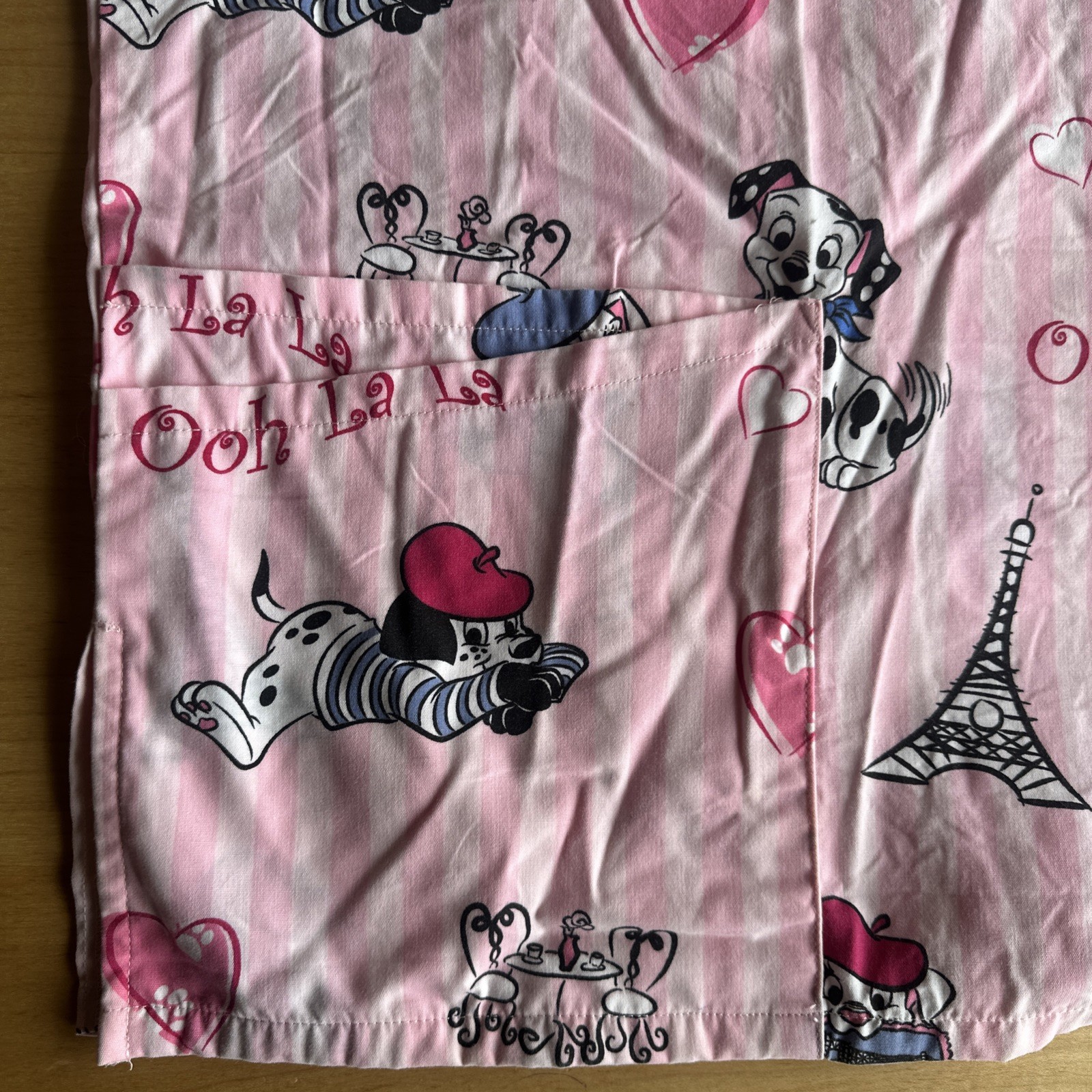 как выглядит Disney Women Scrub Top M Pink Striped Graphic 101 Dalmatians DaDogs Hearts фото