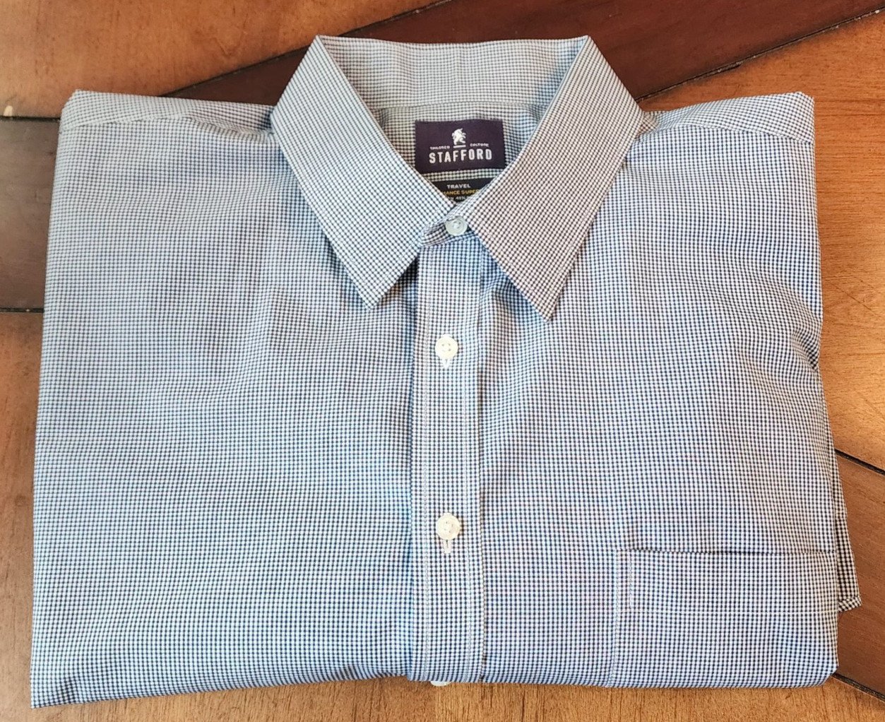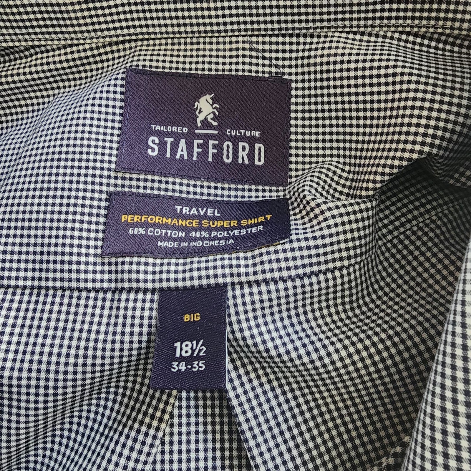 Stafford Travel Performance Super Shirt Grey Micro Plaid Size 18.5 34/35 Big