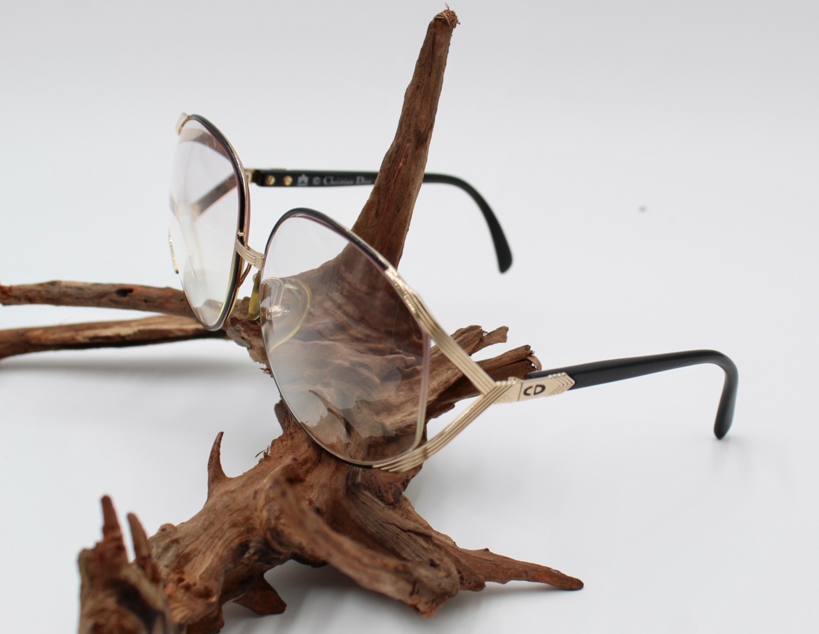 как выглядит Vintage 80s Christian Dior Butterfly 2250 48 Gold Black FRAMES Austria Optyl фото