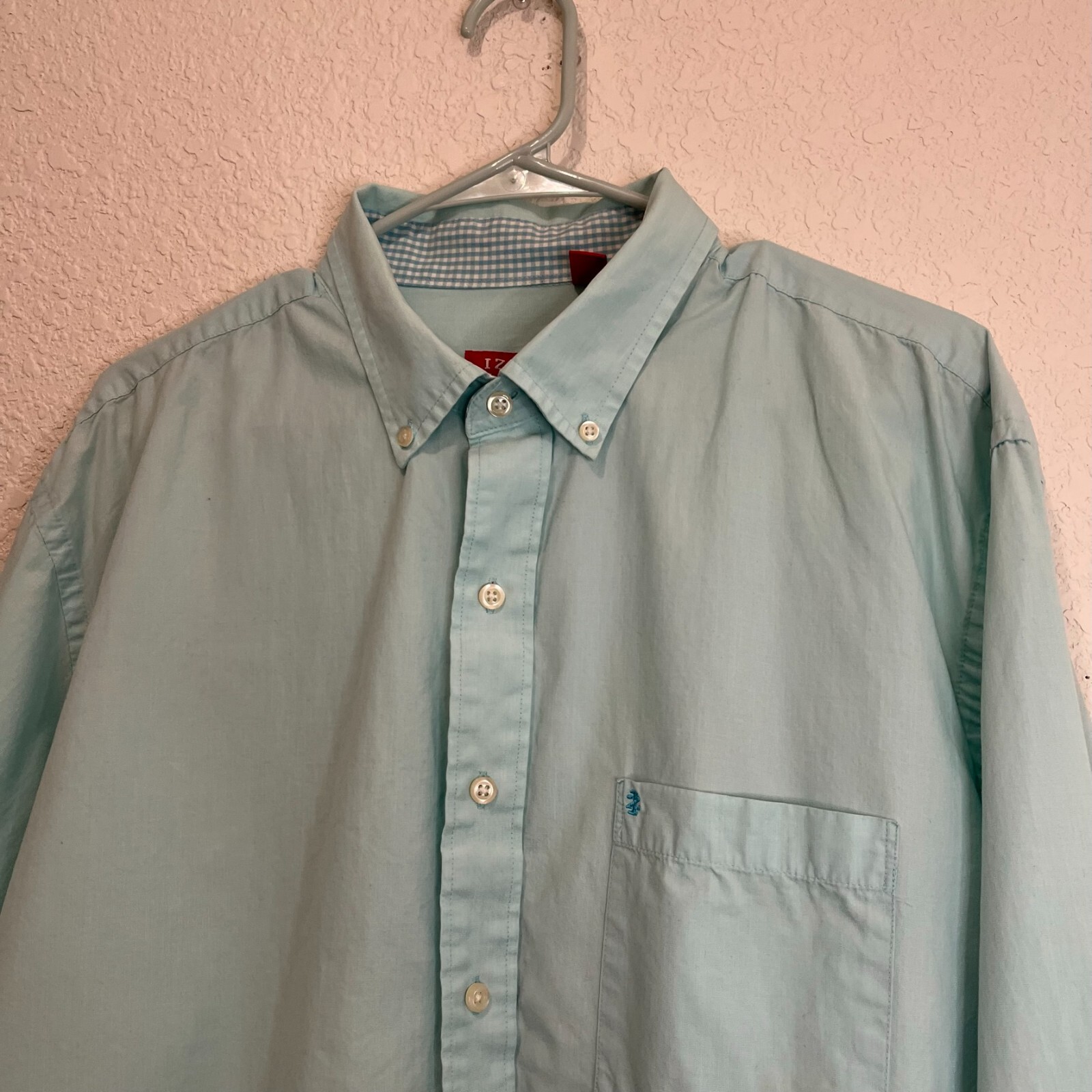 как выглядит Izod Mens Light Blue Long Sleeve Pocket Collared Button Up Shirt Size XL фото