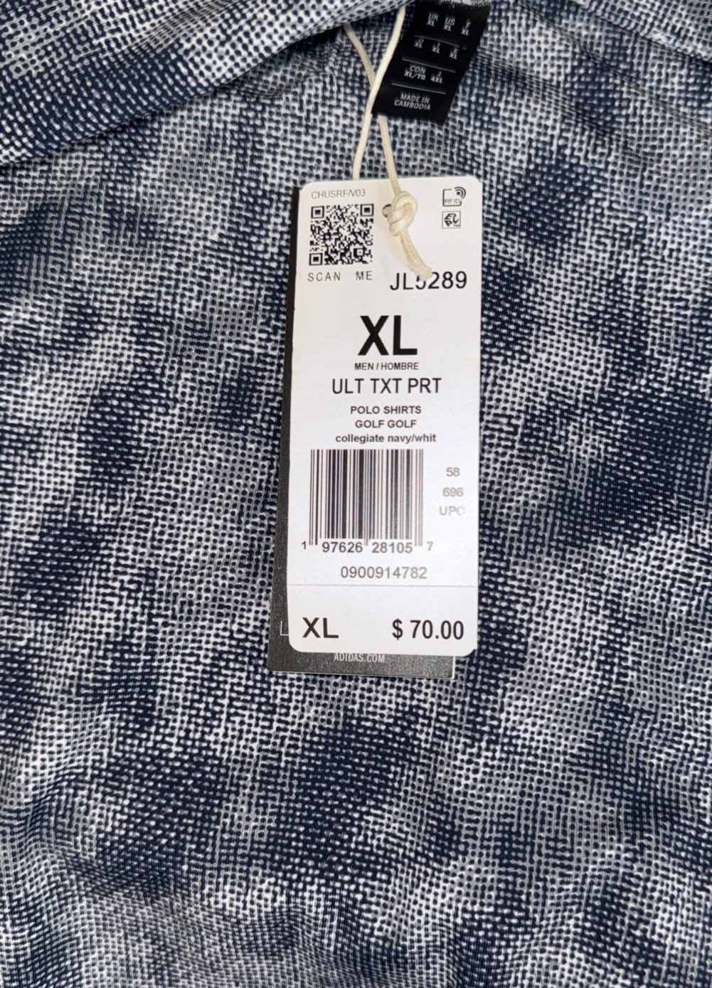 70 Adidas Men's Ultimate365 Textured Print Polo Shirt - Navy/White-XLarge- New