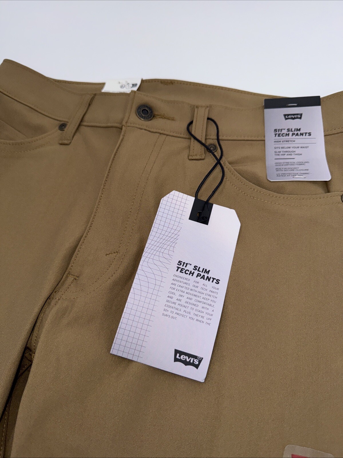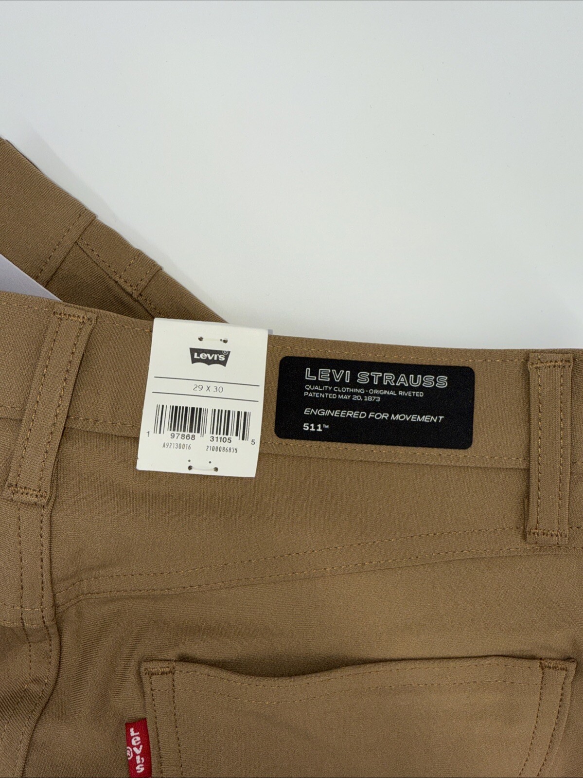 70 Levi's Men's 511 Slim Tech Pants Stretch A92130010- Tan - 29W 30L - New Tag