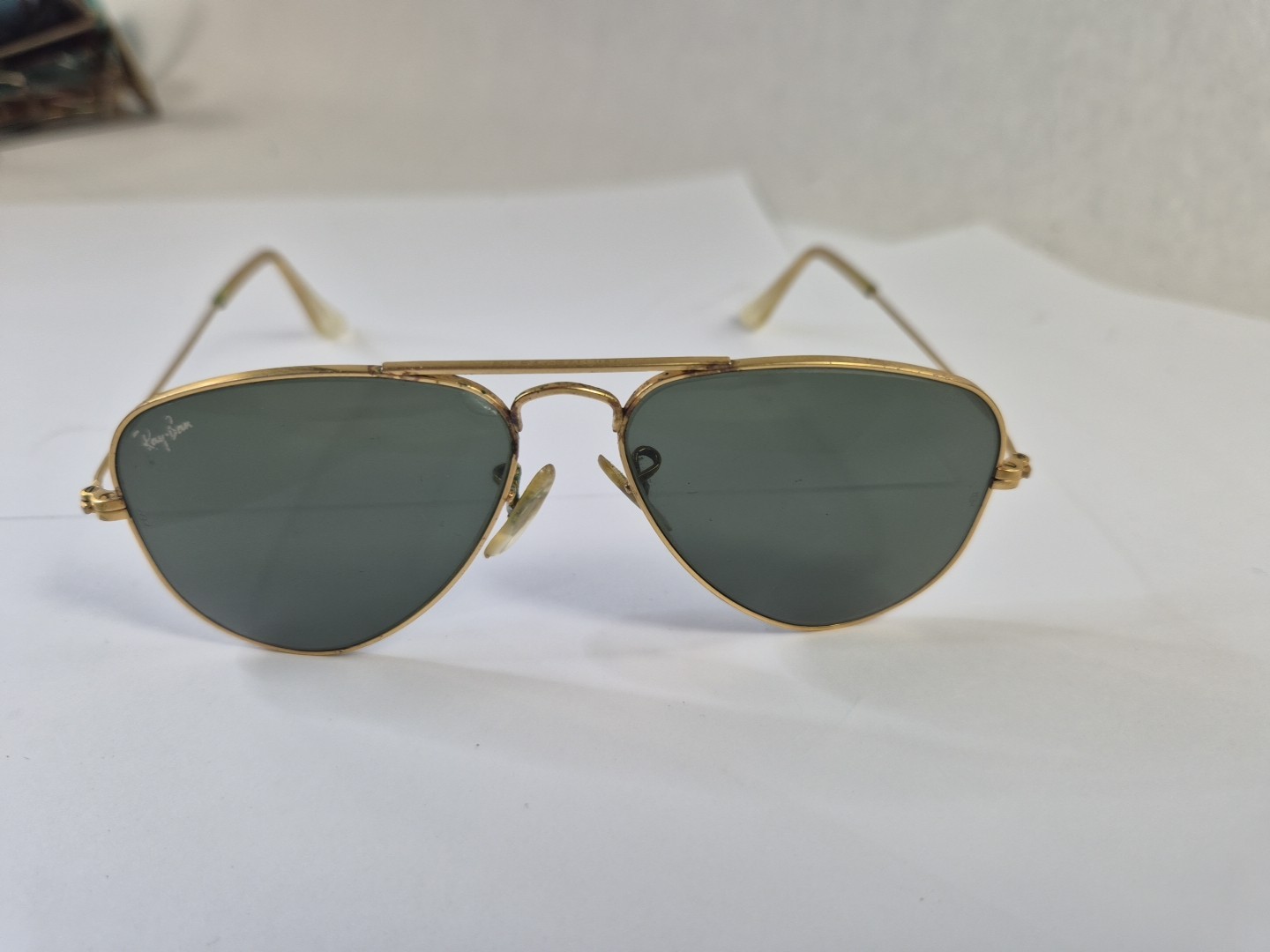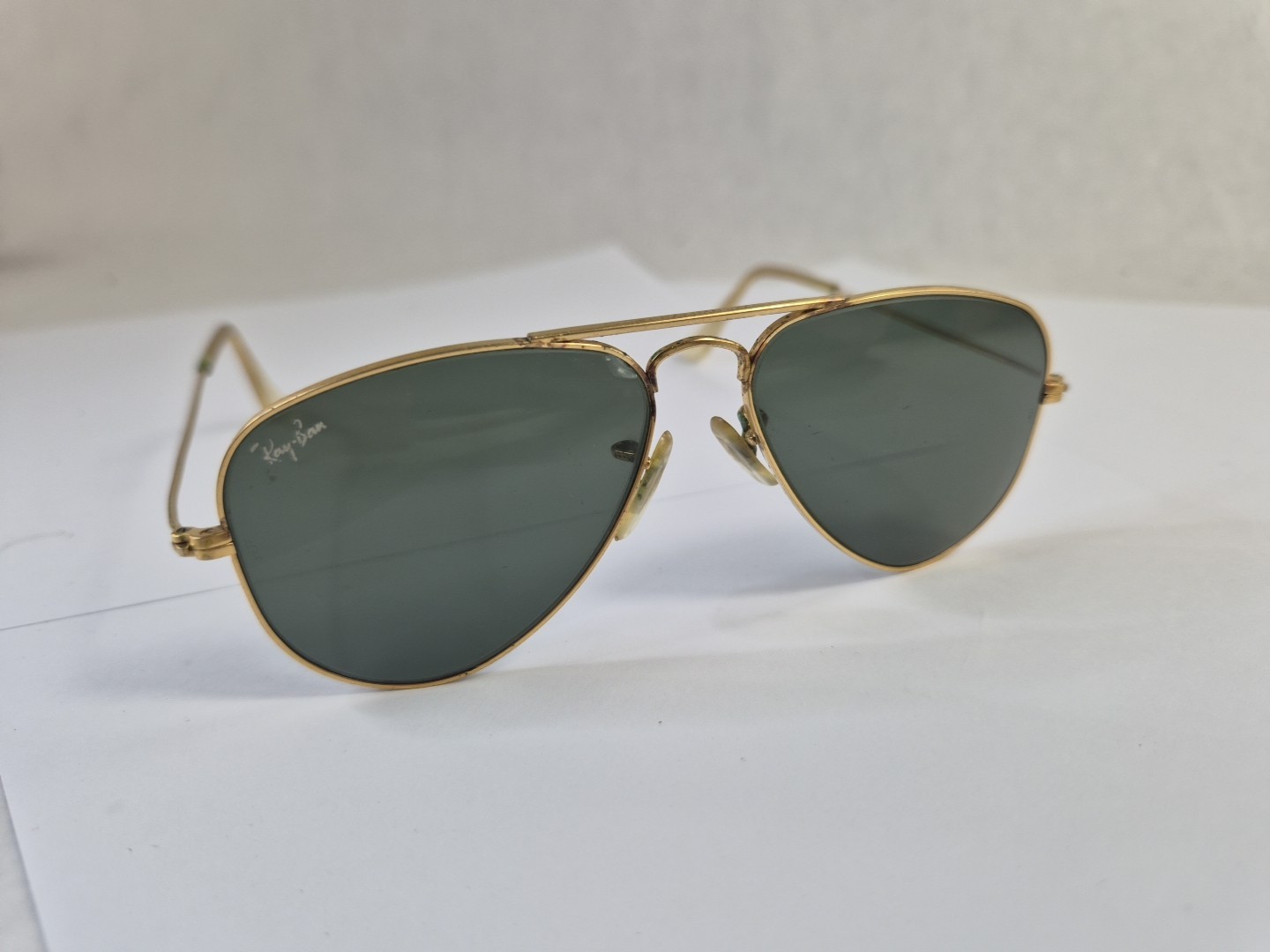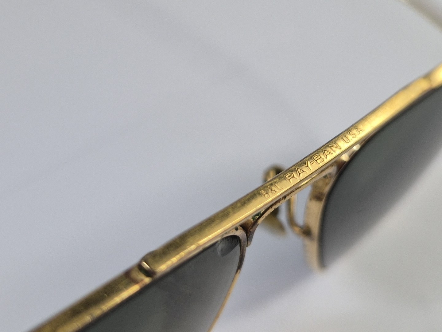 как выглядит Vintage B L Ray Ban USA Etched Sunglasses Aviator Polarized Gold, Small Frame фото