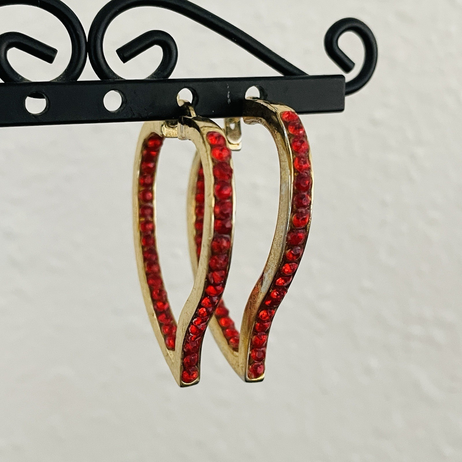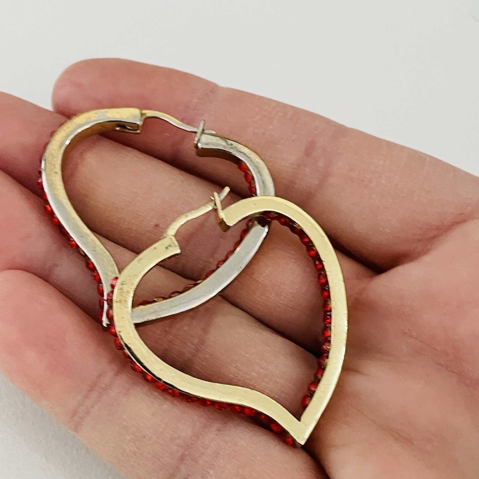 Red Heart Hoop Earrings Gold Crystal Pave Rhinestone Statement Valentine s Gift