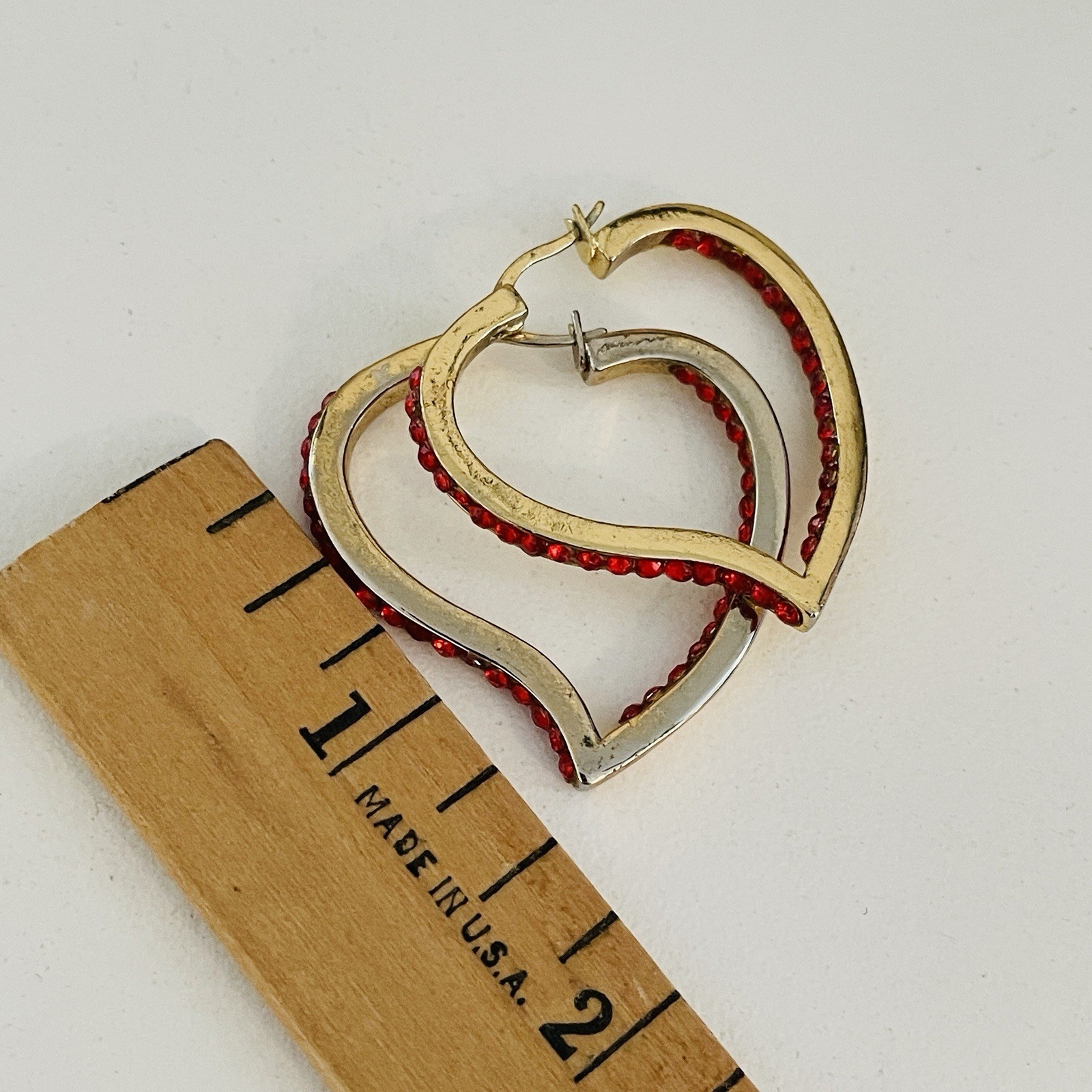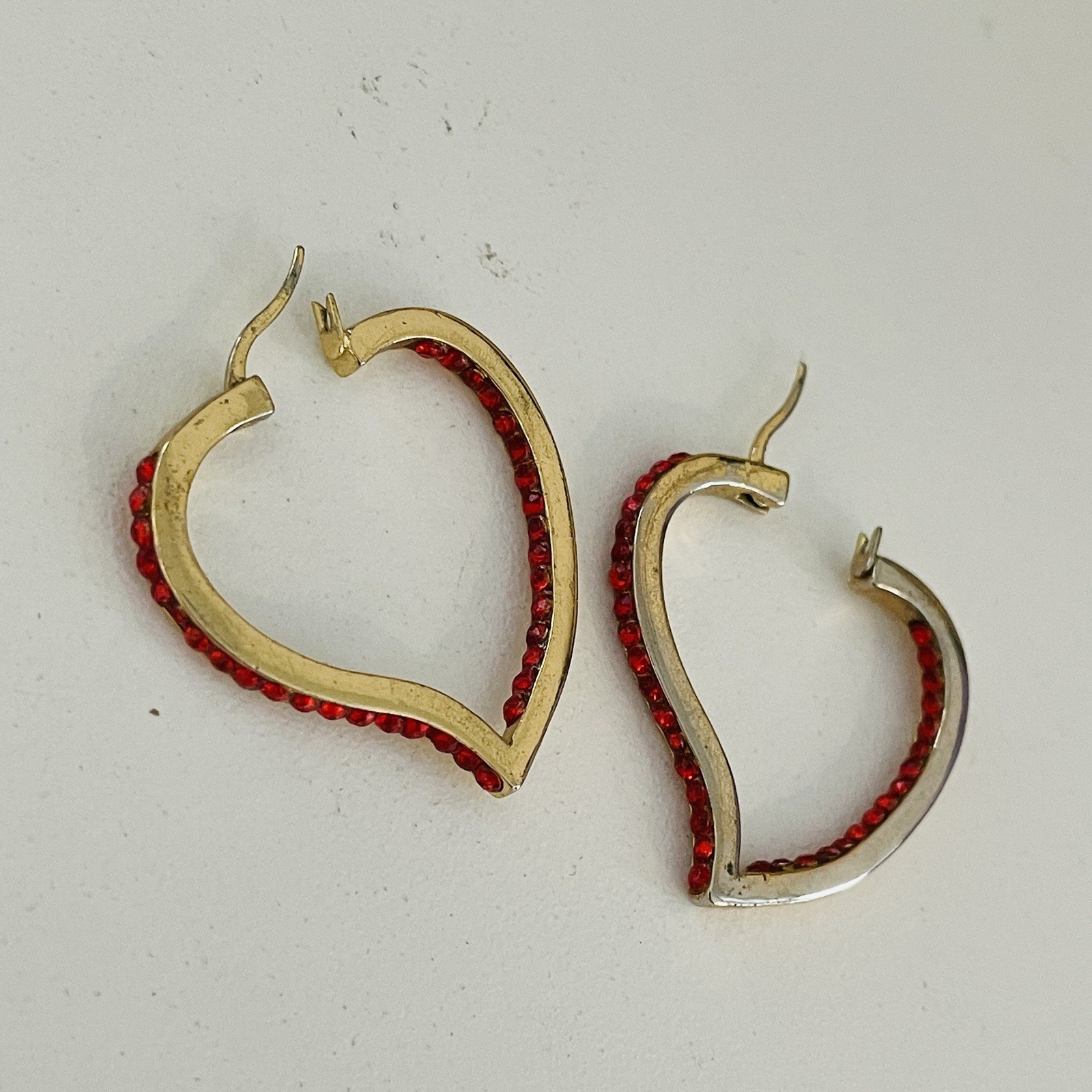 как выглядит Red Heart Hoop Earrings Gold Crystal Pave Rhinestone Statement Valentine s Gift фото