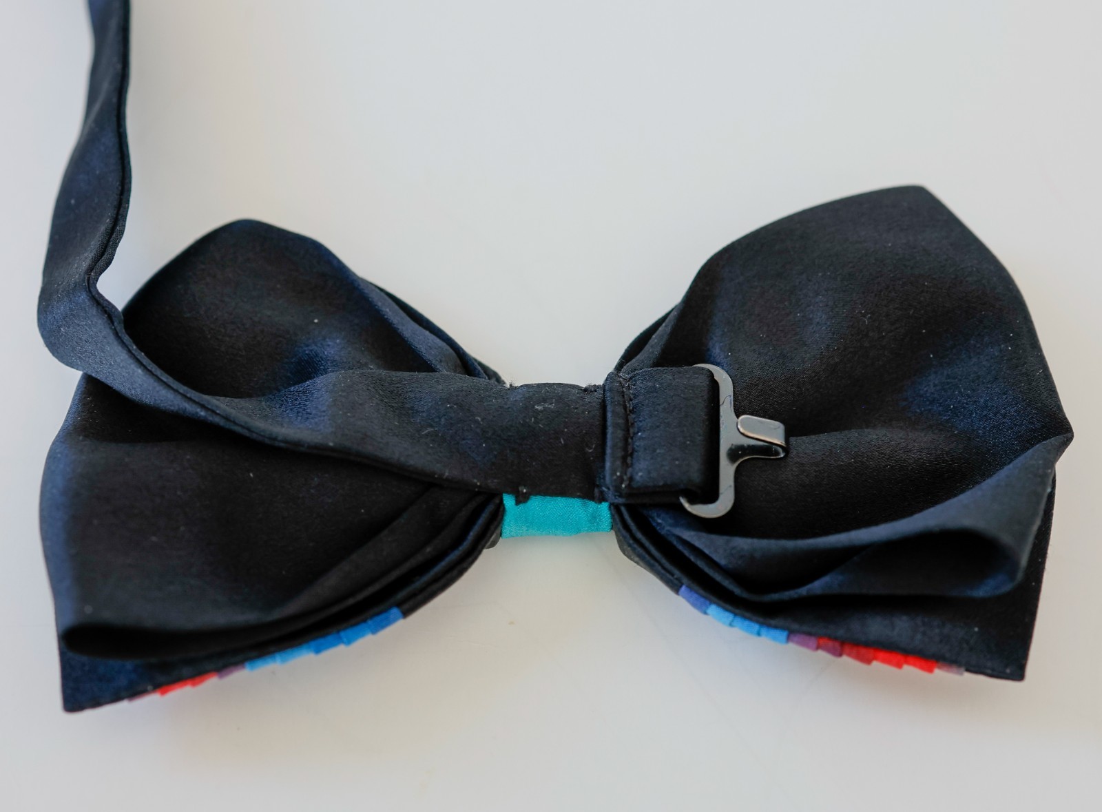 Retro Pleated Rainbow Bow Tie Wedding Tuxedo Formal Event Prom Academia Grandpa
