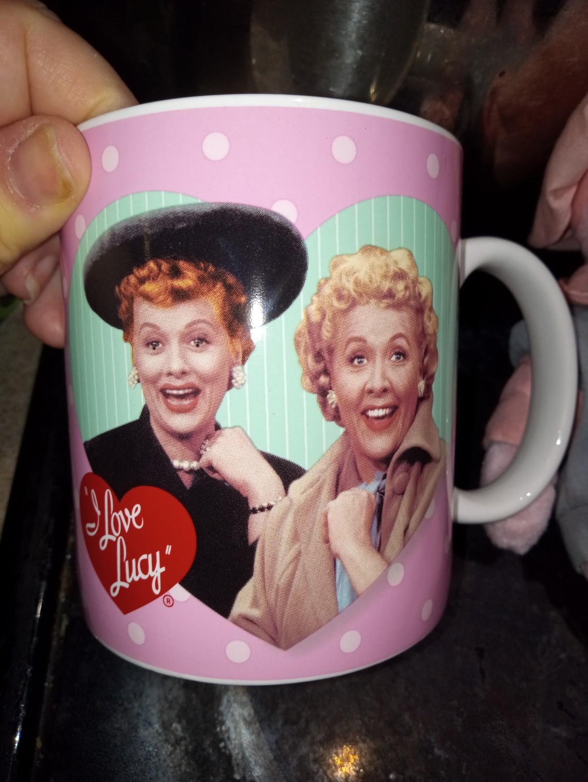 • I Love Lucy 50th Anniversary Teddy Bear Tag Chocolate Factory New Mug Ethel