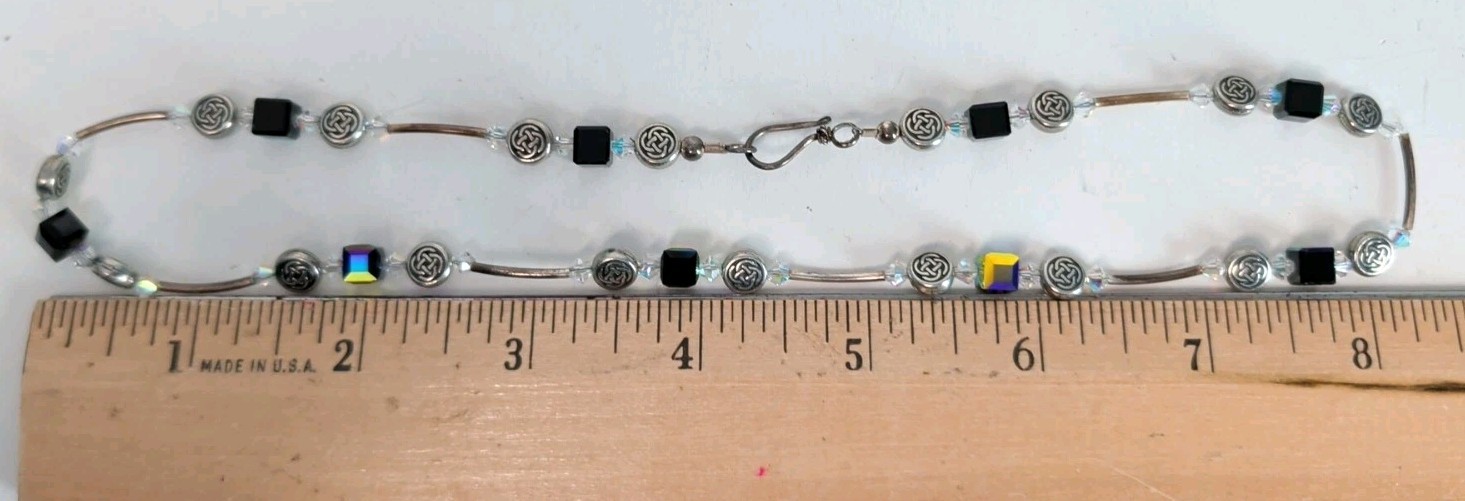 как выглядит Silvertone Beaded Choker Necklace With Aurora Borealis Square Beads JL фото