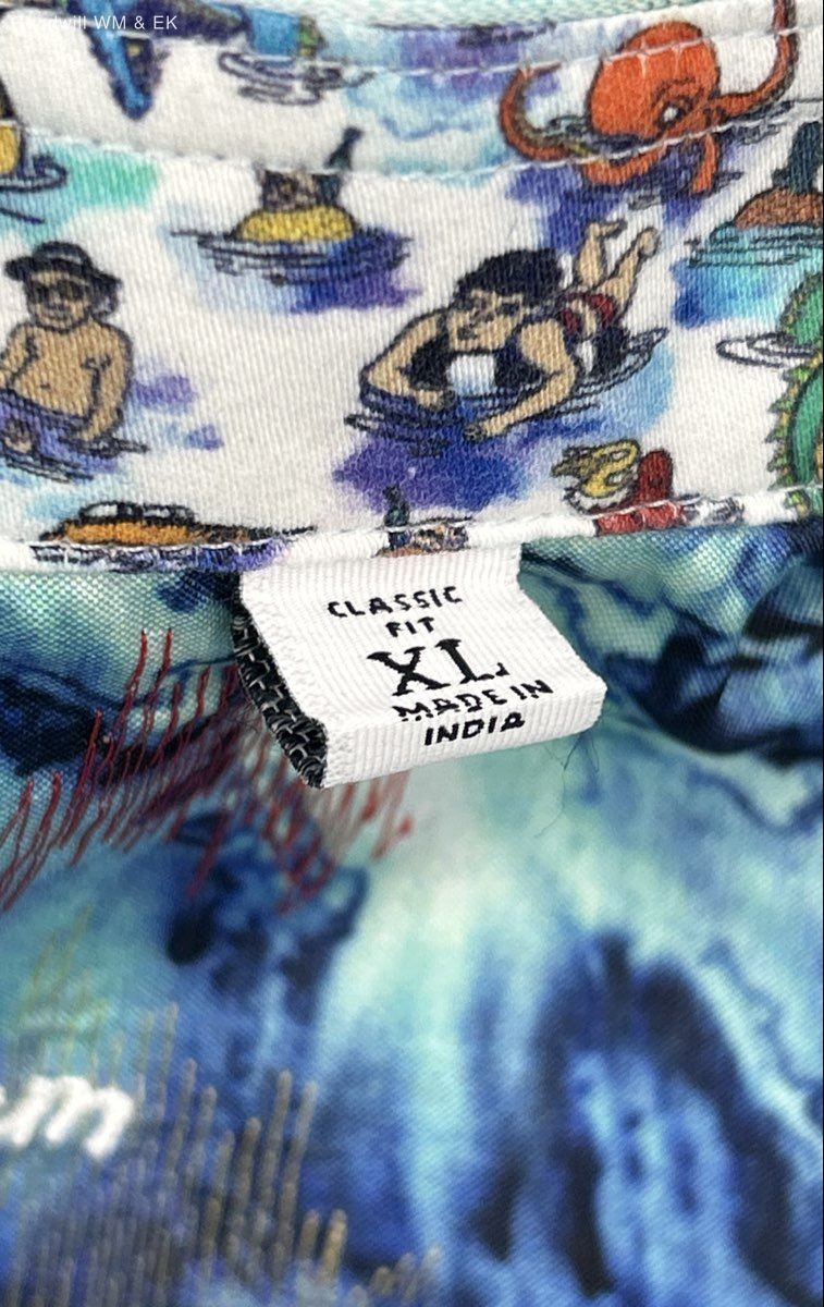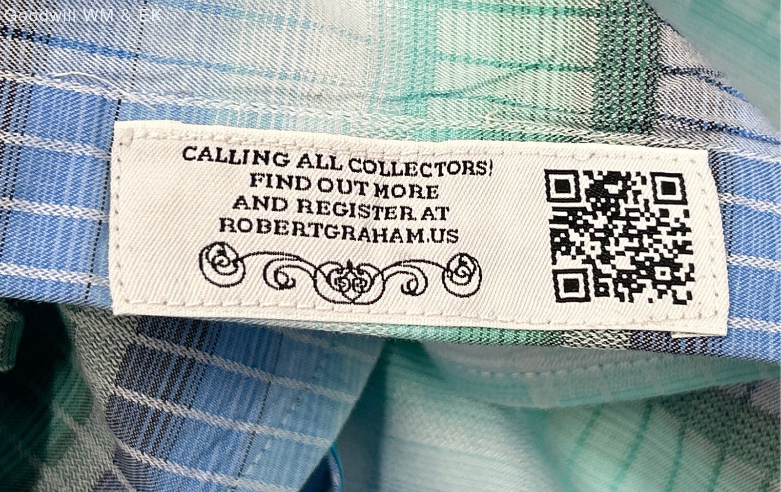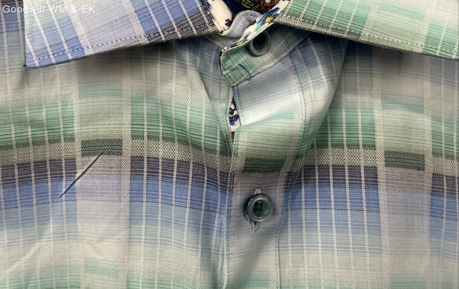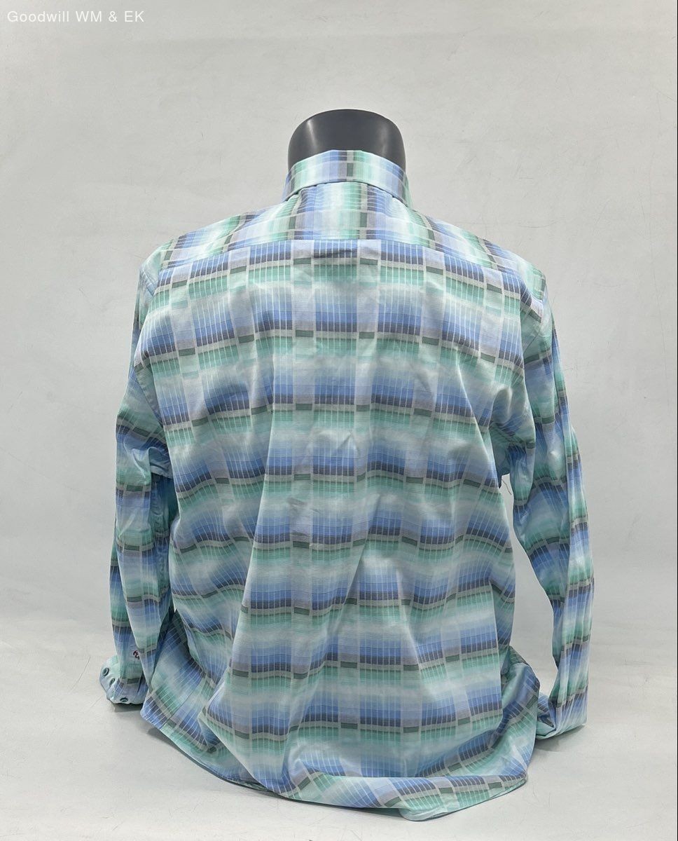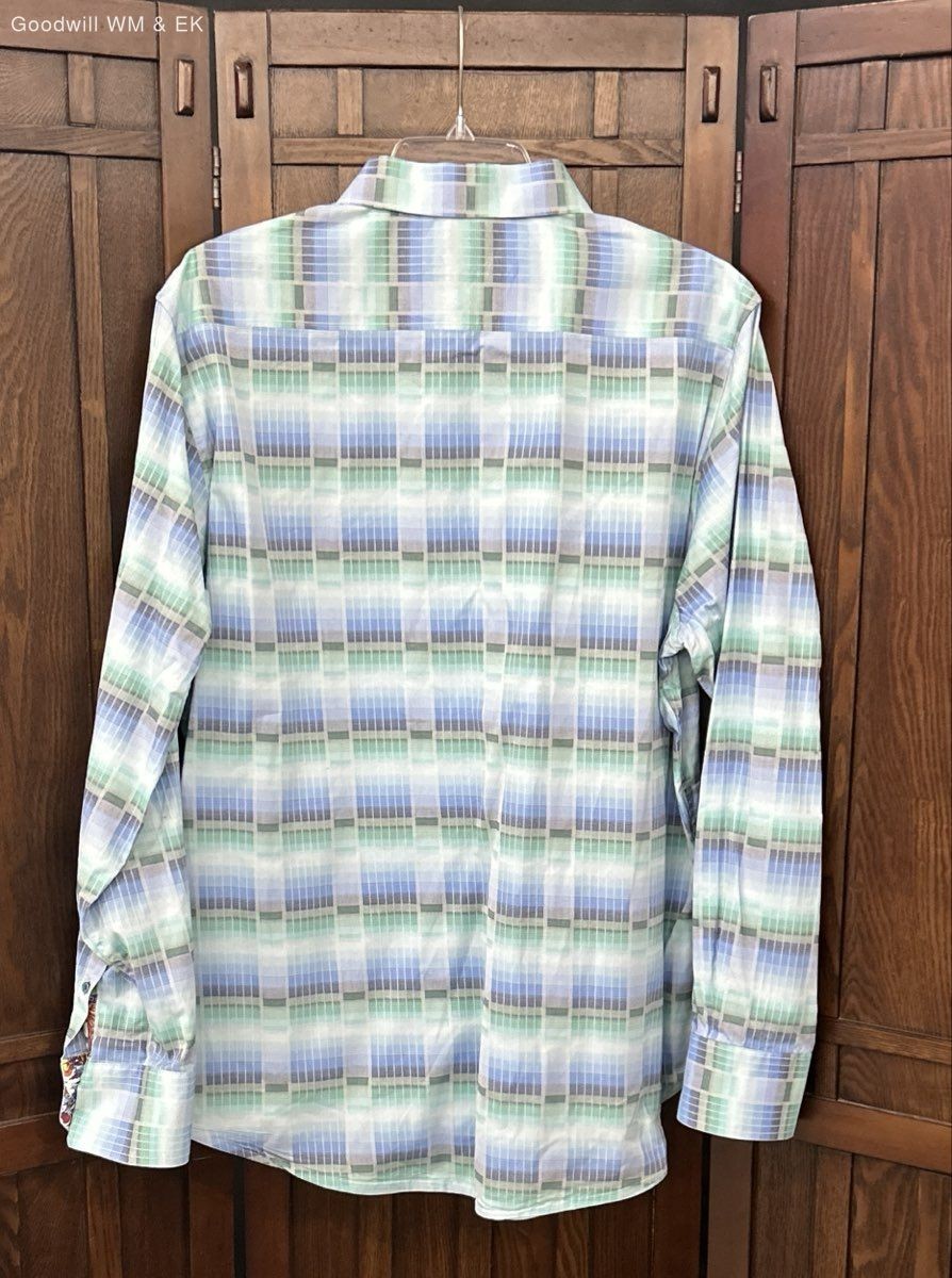 как выглядит Mens Robert Graham Teal/Blue/Gray Long-Sleeve Cotton Button-Down Shirt - Sz XL фото