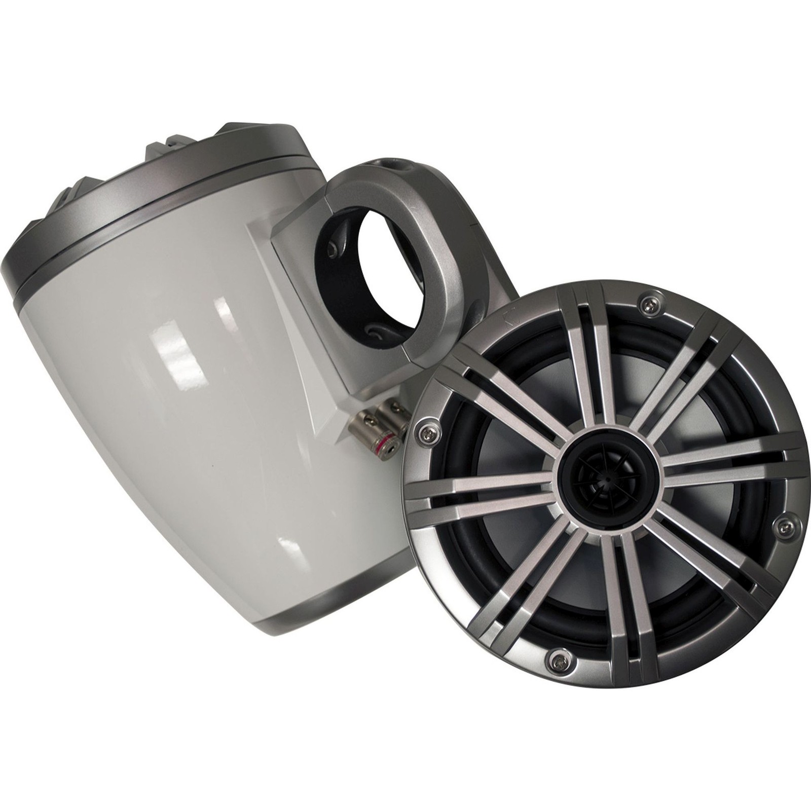 как выглядит White Kicker Wake Towers with Silver Kicker 6.5" Marine RGB LED Speakers Pair фото