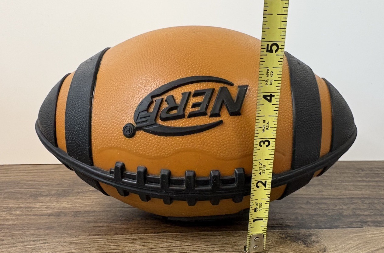 как выглядит NERF Football All Weather Blitz Hasbro Rubber Grip 9" Orange Brown Foam 2005 фото
