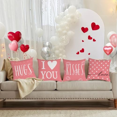 Happy Valentines Day Pillow Covers 18x18 Set of 18 x 18 Pack of 4 Heart-01