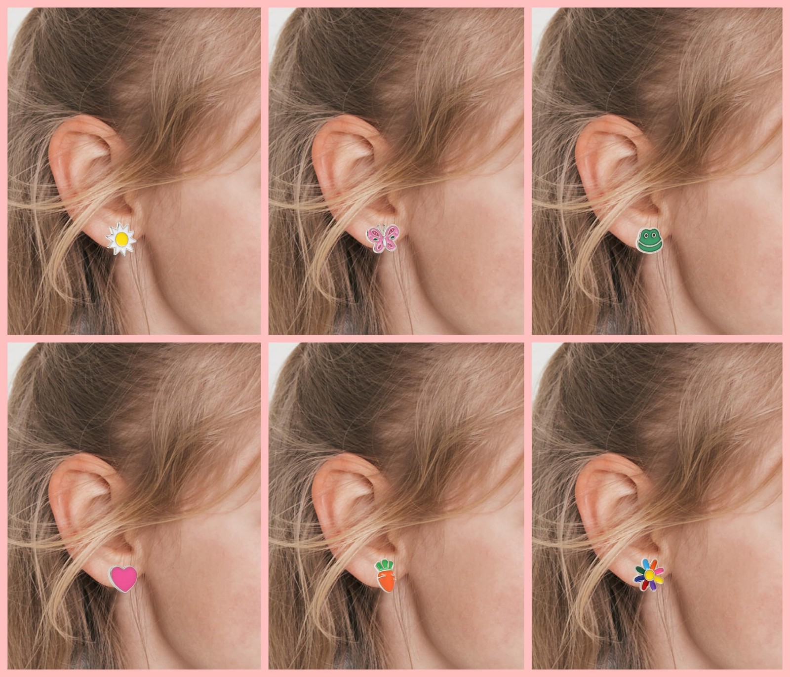 24 Pairs Hypoallergenic Stud Earrings for Girls Kids Cute 10mm, colorful