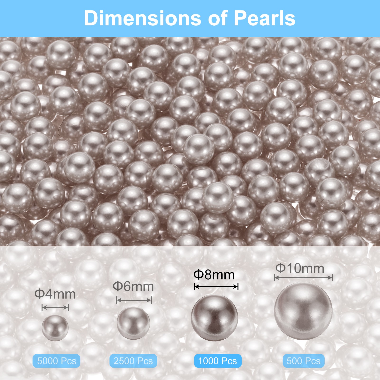 1000Pcs Faux Pearl for Crafting 8mm No Hole ABS Round Pearls Beads Light Coffee
