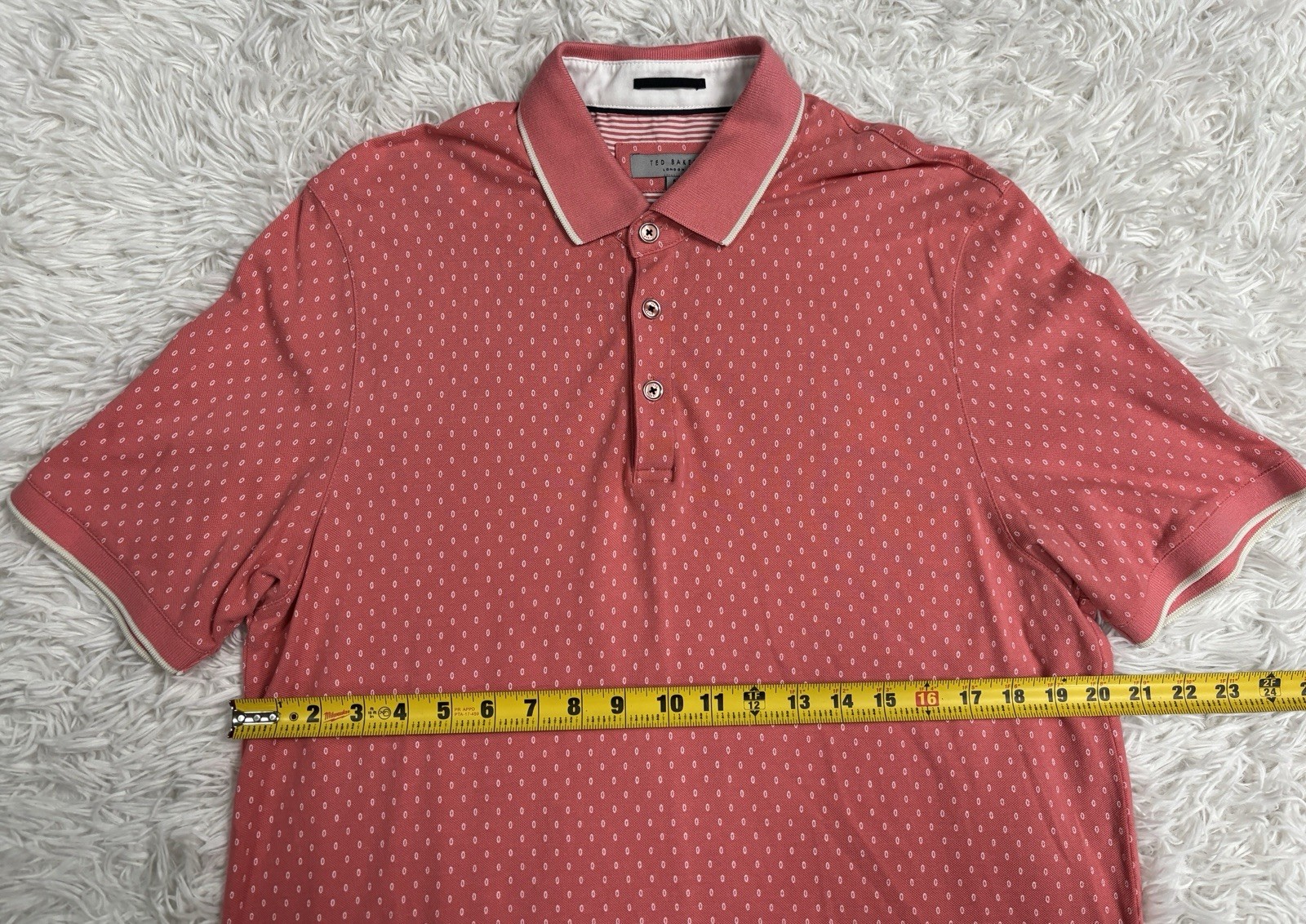 Ted Baker Men s Polo Shirt XL Coral Pink Short Sleeve Geo Geometric Print