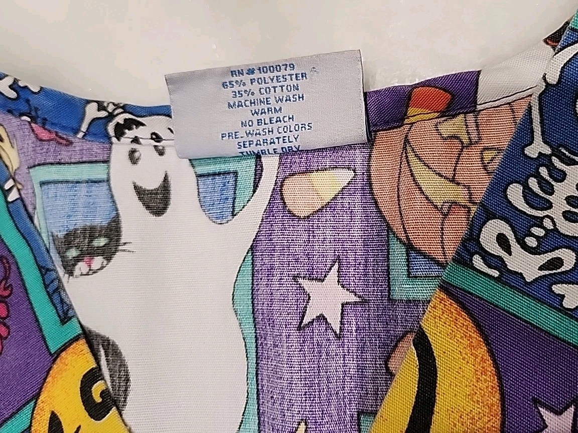 Halloween Cotton Blend 2-Pocket V-neck Scrub Top 40-in Bust Extra Small XS USA