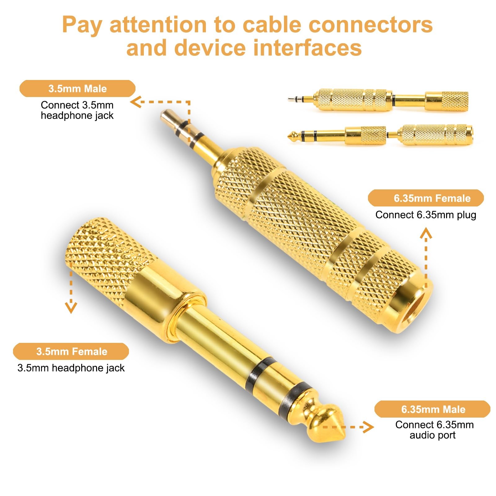 QAJOPFN 4 Pack Headphone Jack Adapter - 3.5mm 1/8 inch Male to 6.35mm 1/4 inc...