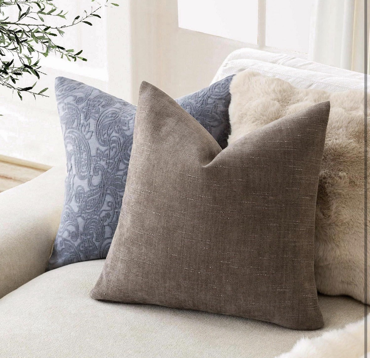 Foindtower Pack of 2 Soft Textured Chenille Pillow Covers 16x16 Inch, Taupe Grey