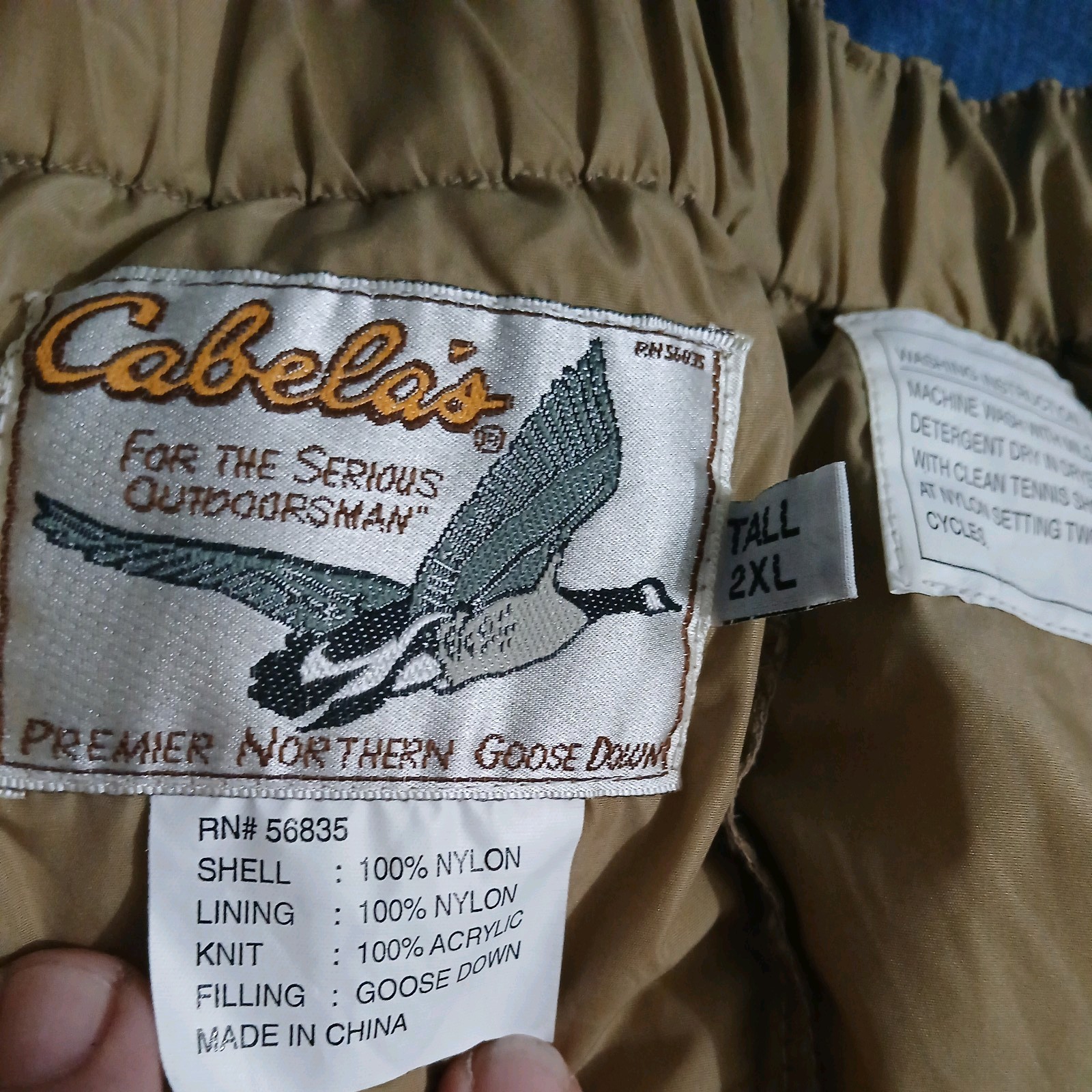 как выглядит Cabelas Mens Tall 2XL Premier Northern Goose DOWN Puffer Pants 35 Inseam Picture фото