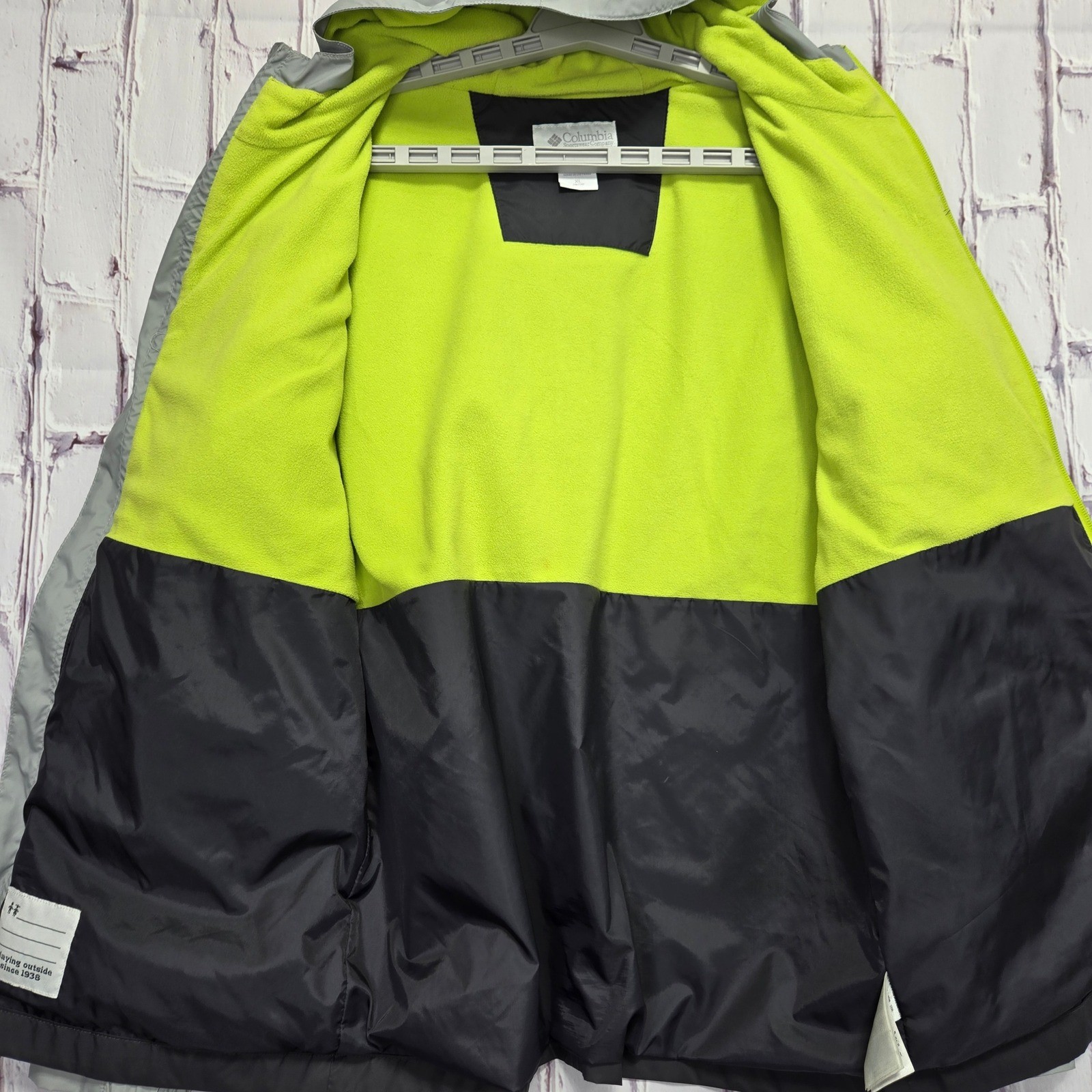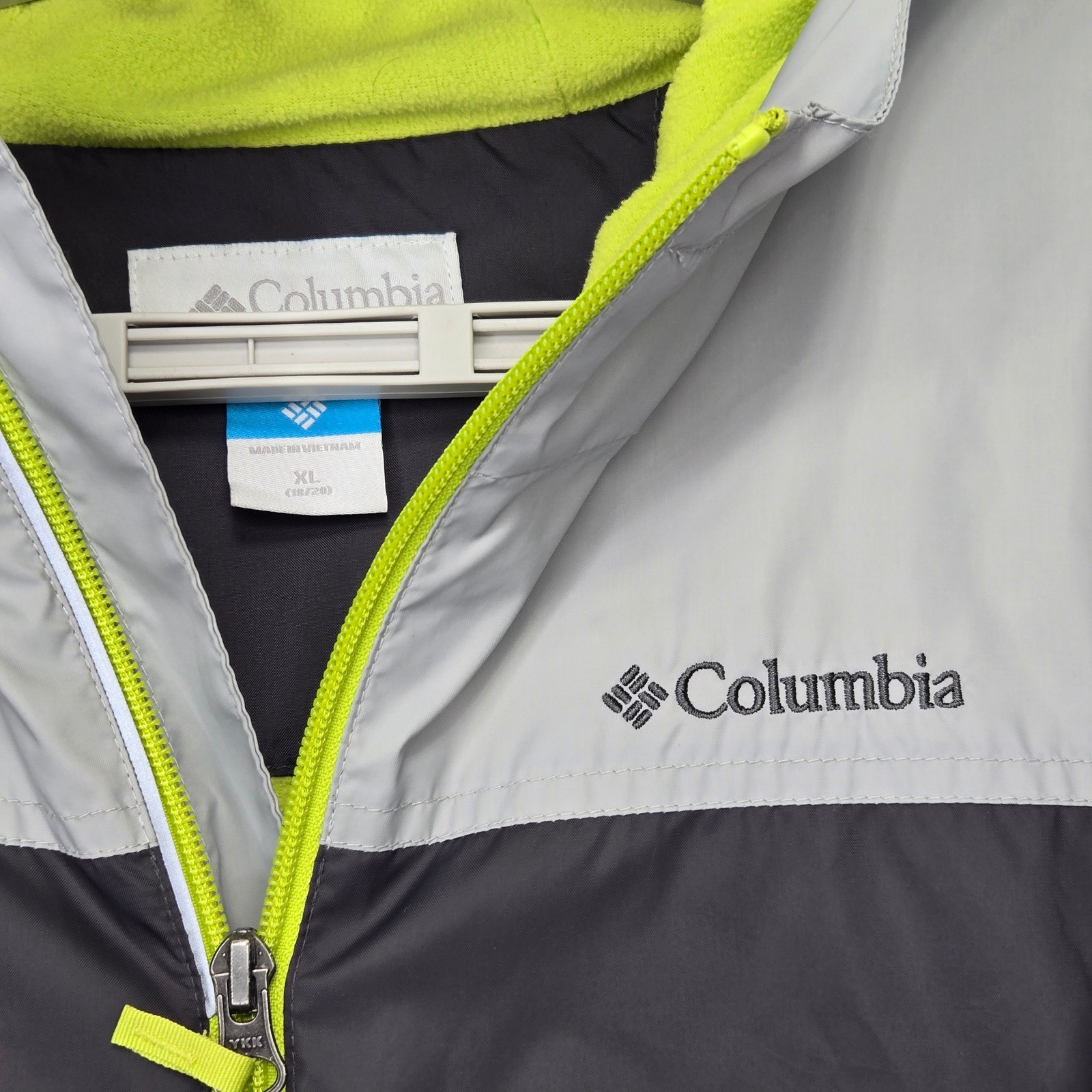как выглядит Columbia Kids XL 18/20 Grey Black Hooded Lightweight Jacket Fleece Lined Pockets фото