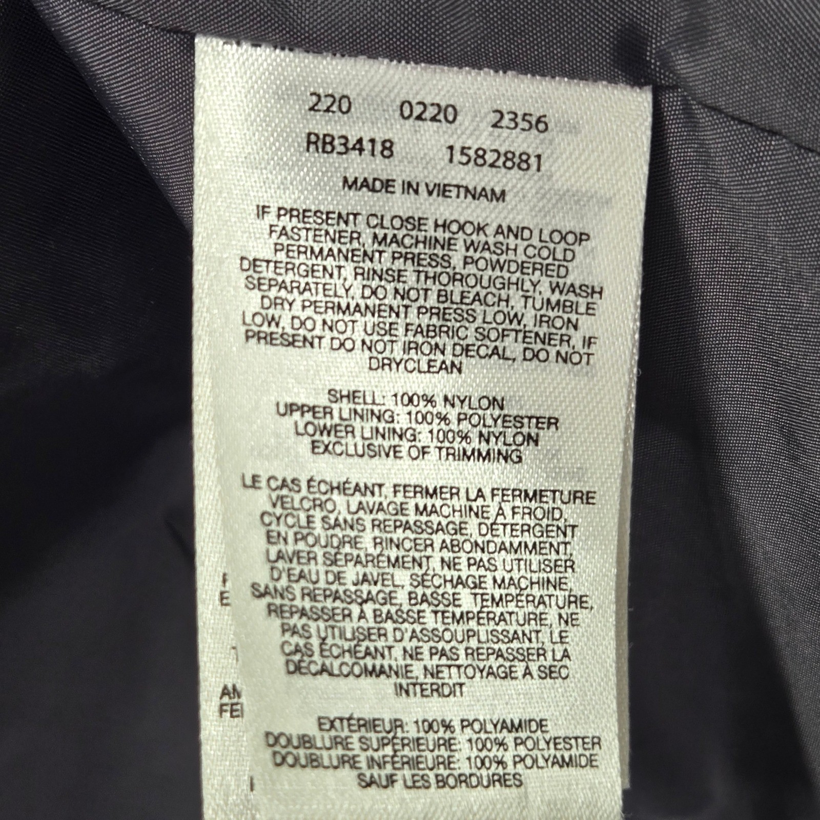 Outer Shell Material: 100% Nylon