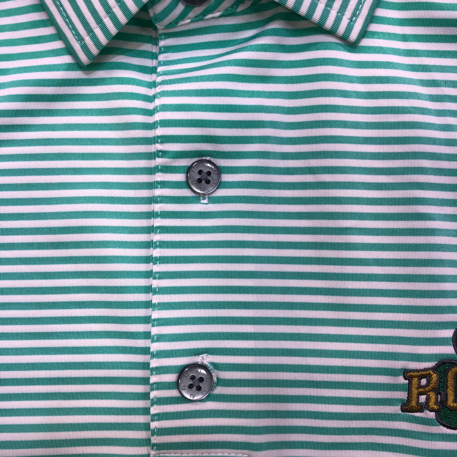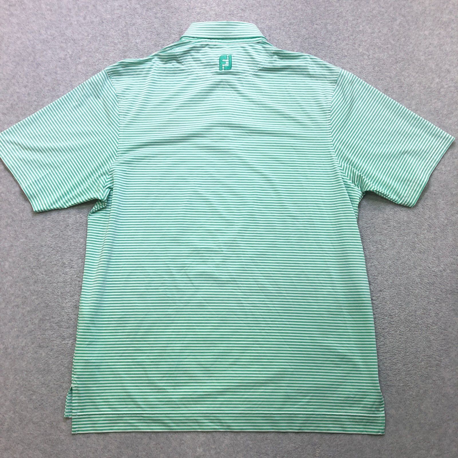 как выглядит Footjoy FJ Polo Shirt Mens Large Gren Stripe Golf Performance Stretch Logo фото