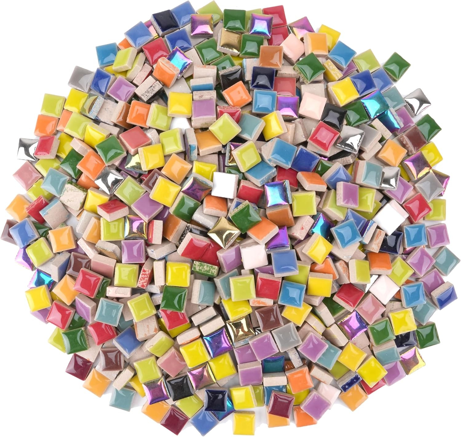 2.2LB Mini Ceramic Square Tiles for Mosaic, Colored Mosaic Ceramic Tiles, 12M...