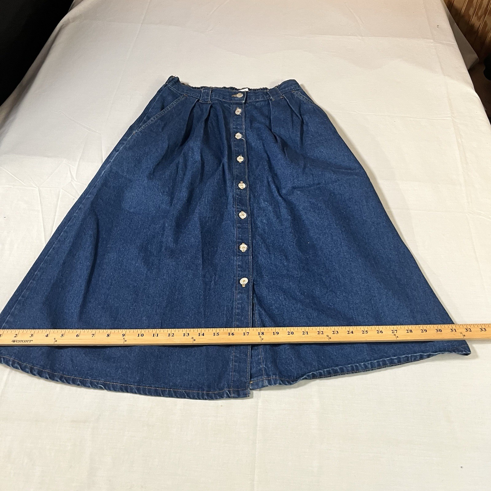 как выглядит Vintage 80s Denim Skirt Button Midi Boho Small 6 USA Granny Core Cottage Modest фото