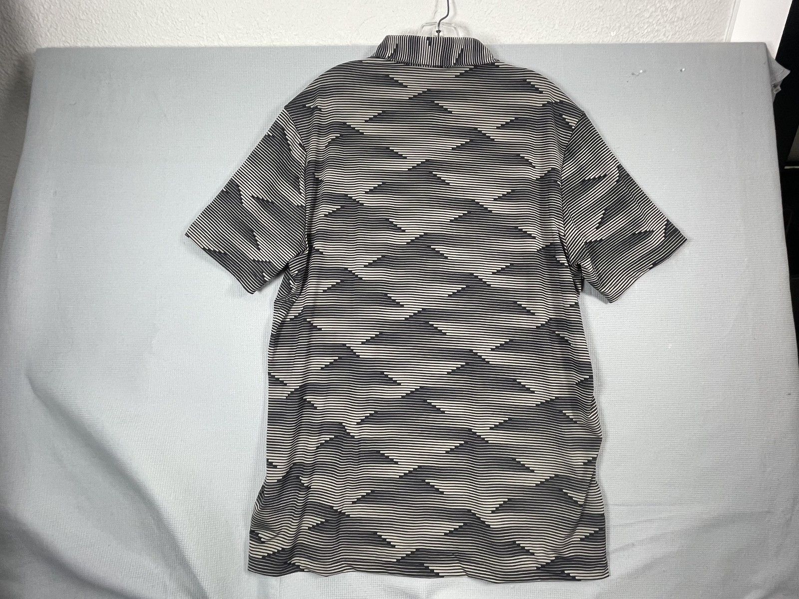 Adidas Polo Shirt Mens Large Blue Geometric Stripe Golf Performance Stretch