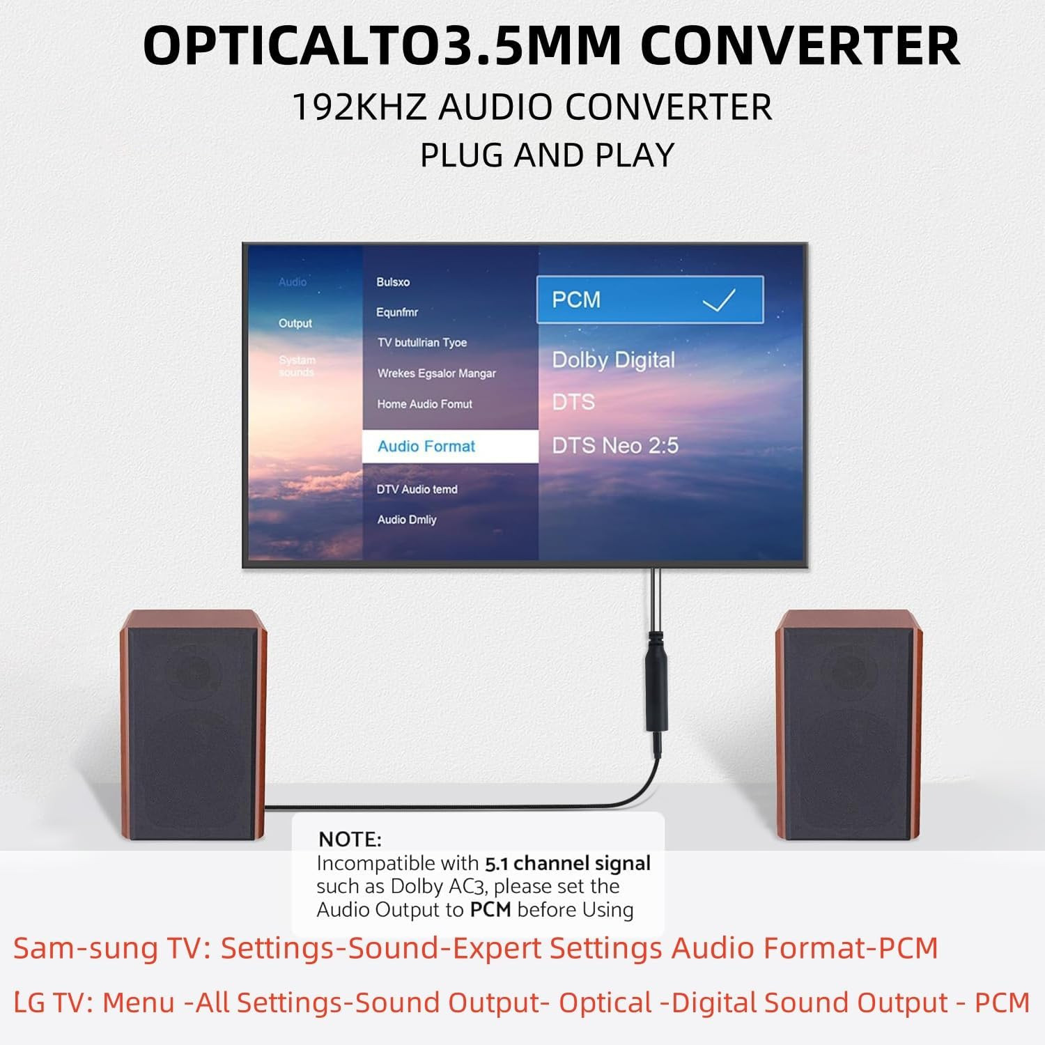 192Khz DAC Optical to 3.5Mm Female Converter,Optical Audio Cable to AUX Cable Ad
