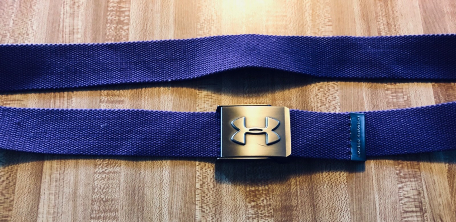 как выглядит Under Armour belt one size fits all up to 44" purple w/silver buckle фото