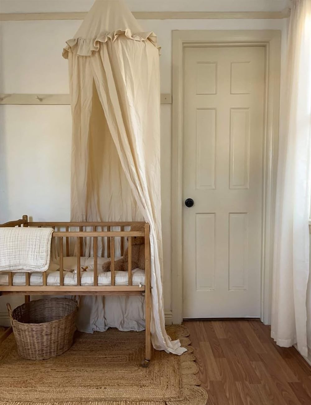 Bed Canopy with Ruffles Cotton Hanging Tent Frills Curtain Net for Baby Nurse...