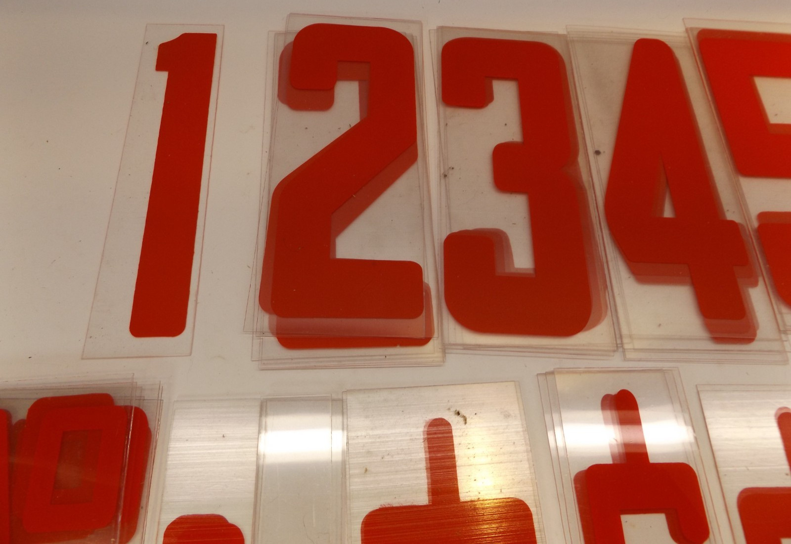 как выглядит 102 Red Used Plastic Outdoor Readerboard Marquee Sign Numbers Symbols 8" ON 9" фото