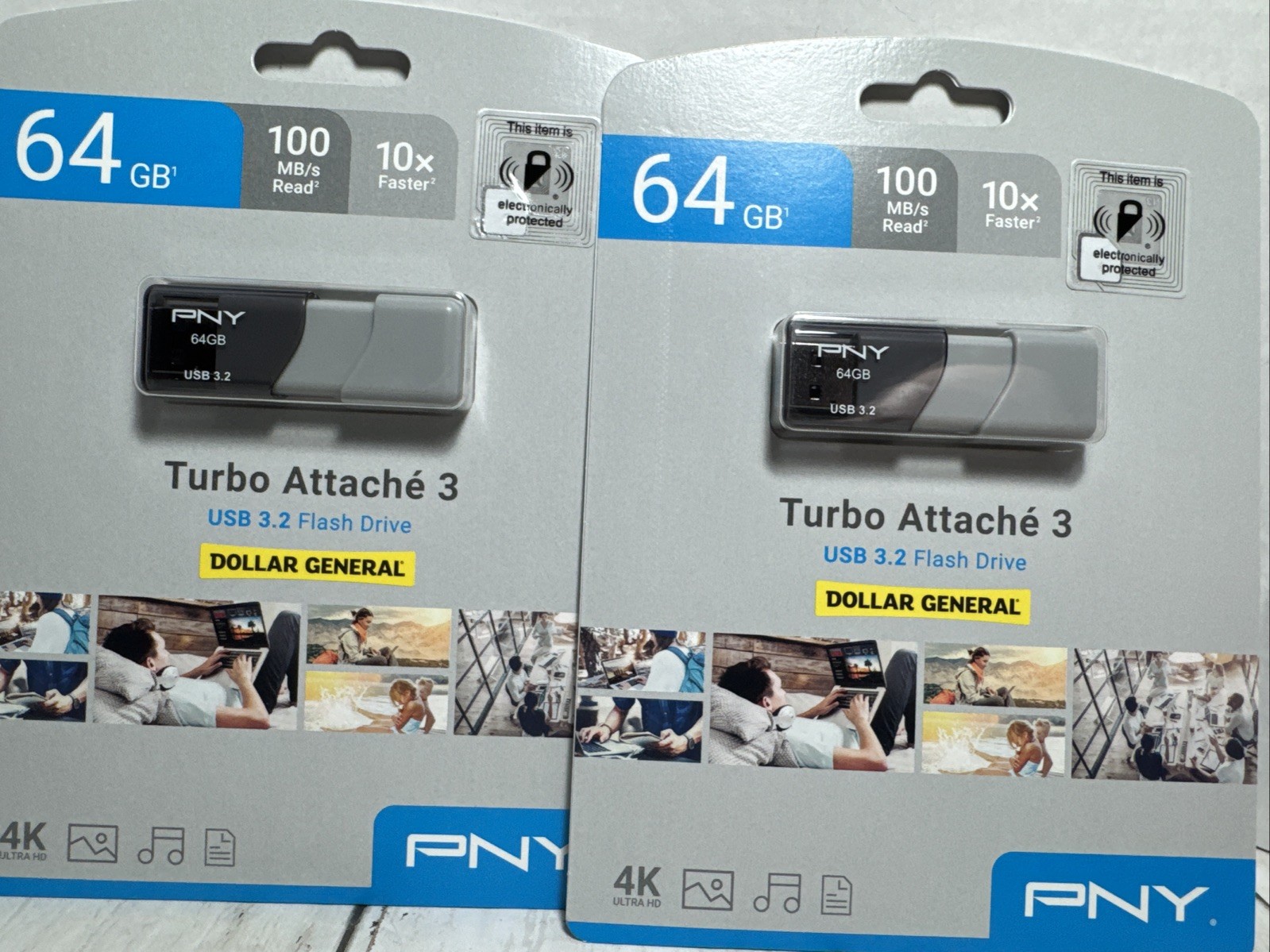 2-PNY Turbo Attach 3, 64GB USB 3.0 Flash Drive, 10X Faster, 4K Ultra HD