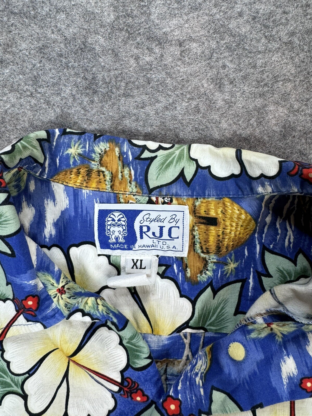 Vintage RJC Hawaiian Men XL Short Sleeve Hawaii USA Island Floral Sea Print