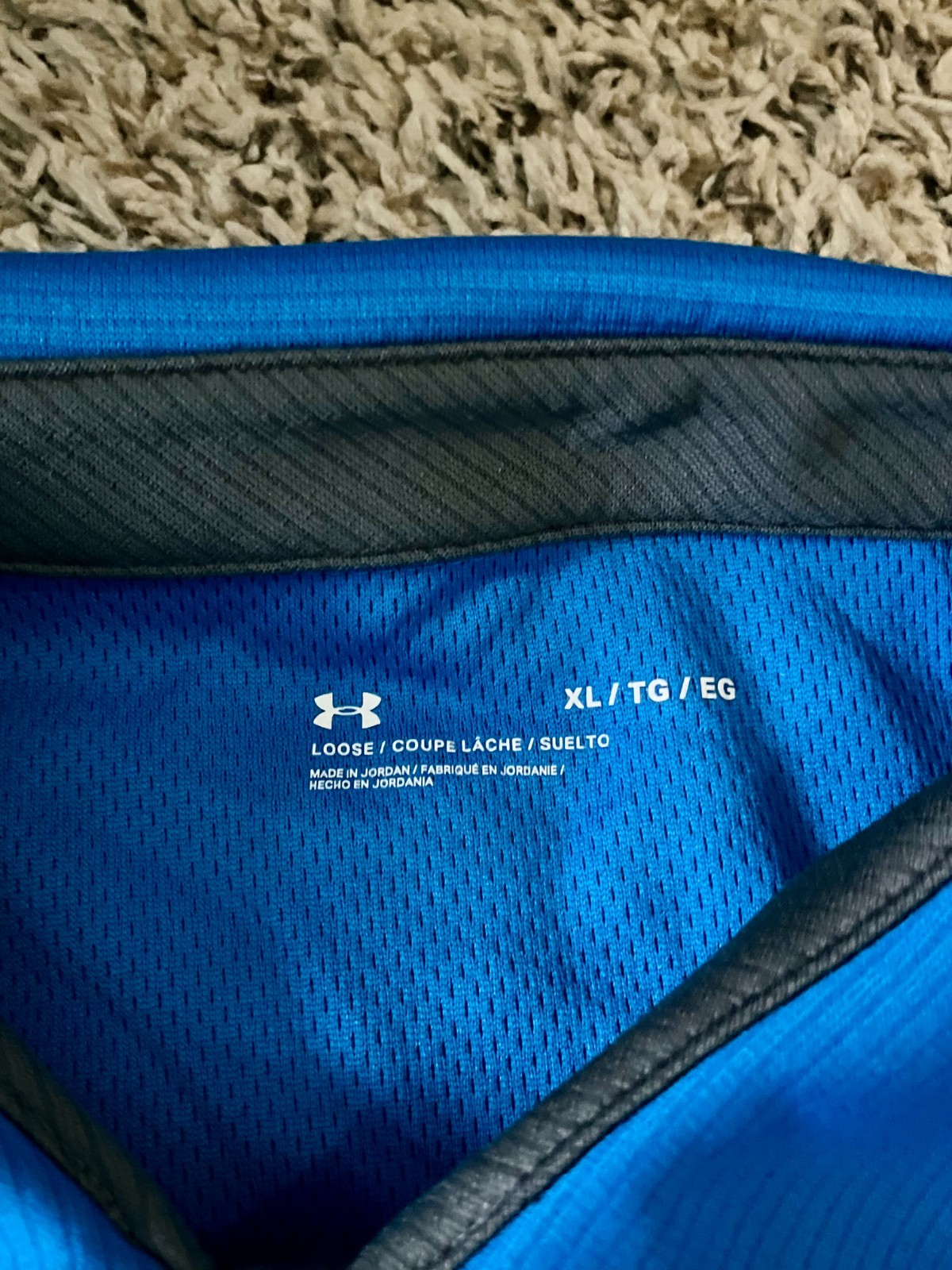 Under Armour Polo Shirt Men s XL Blue Loose Fit Short Sleeve Athletic