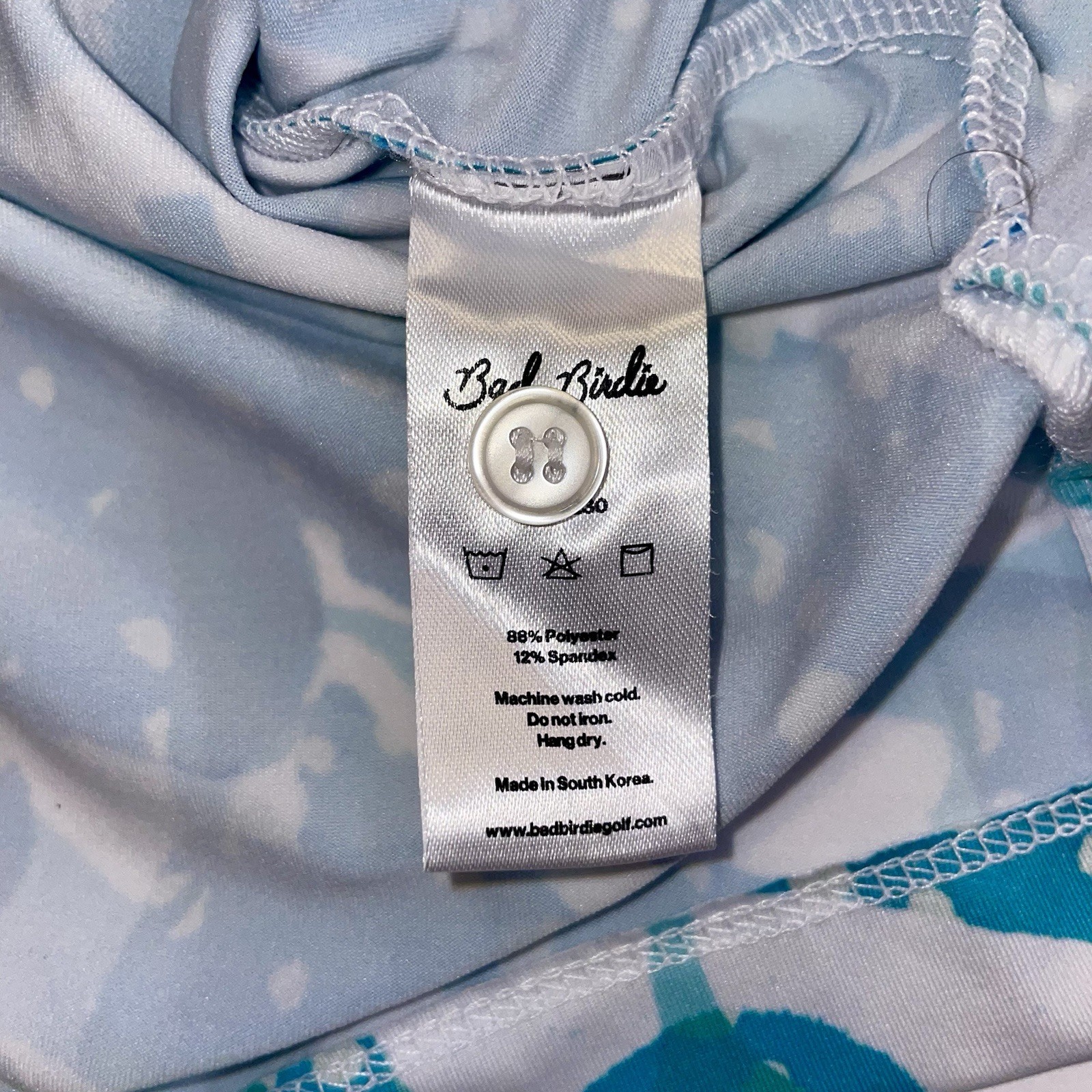 Bad Birdie Caribbean Blue Teal Polo Shirt AOP Mens XL Golf Sport Stretch Spring