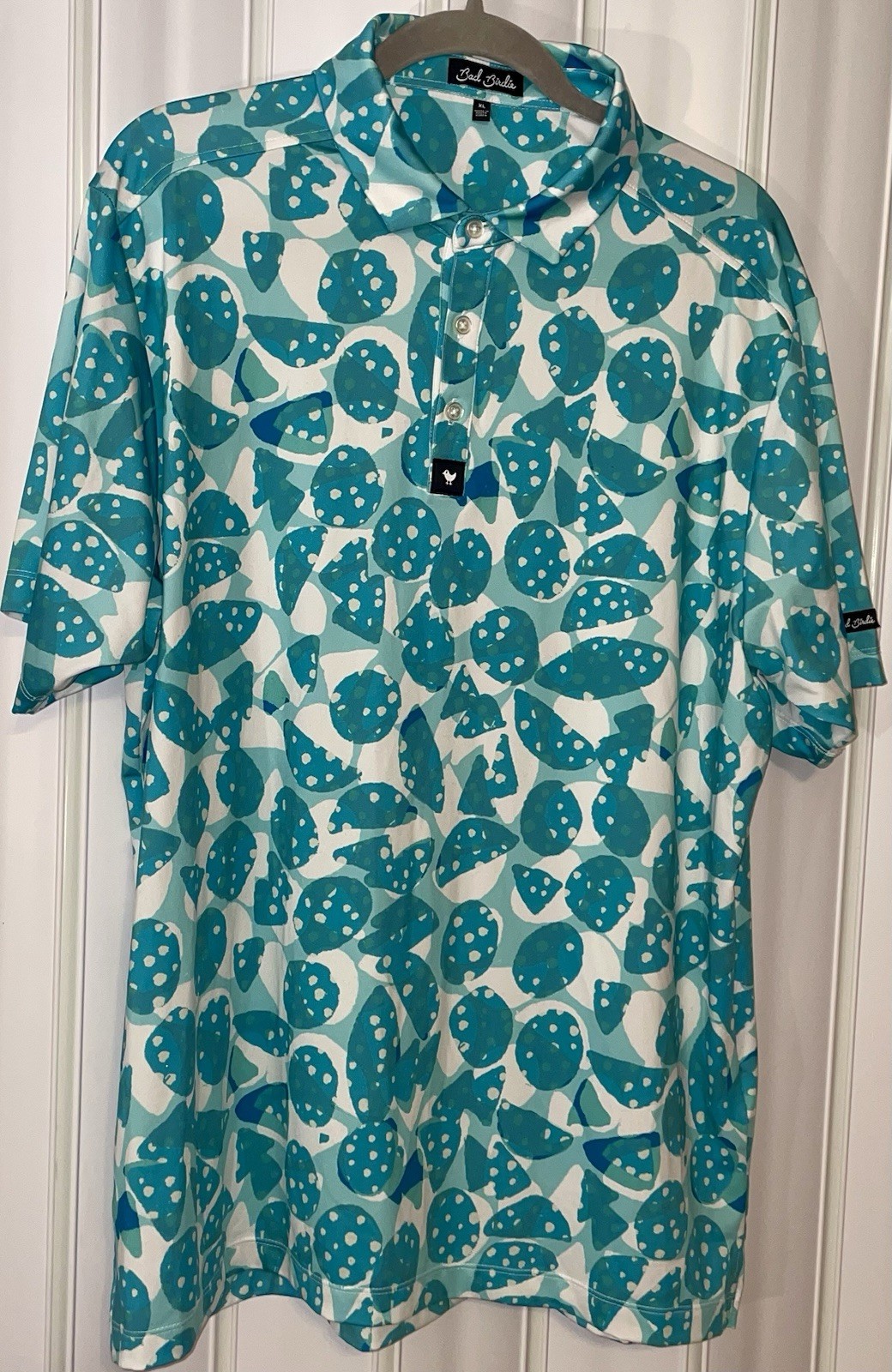 как выглядит Bad Birdie Caribbean Blue Teal Polo Shirt AOP Mens XL Golf Sport Stretch Spring фото