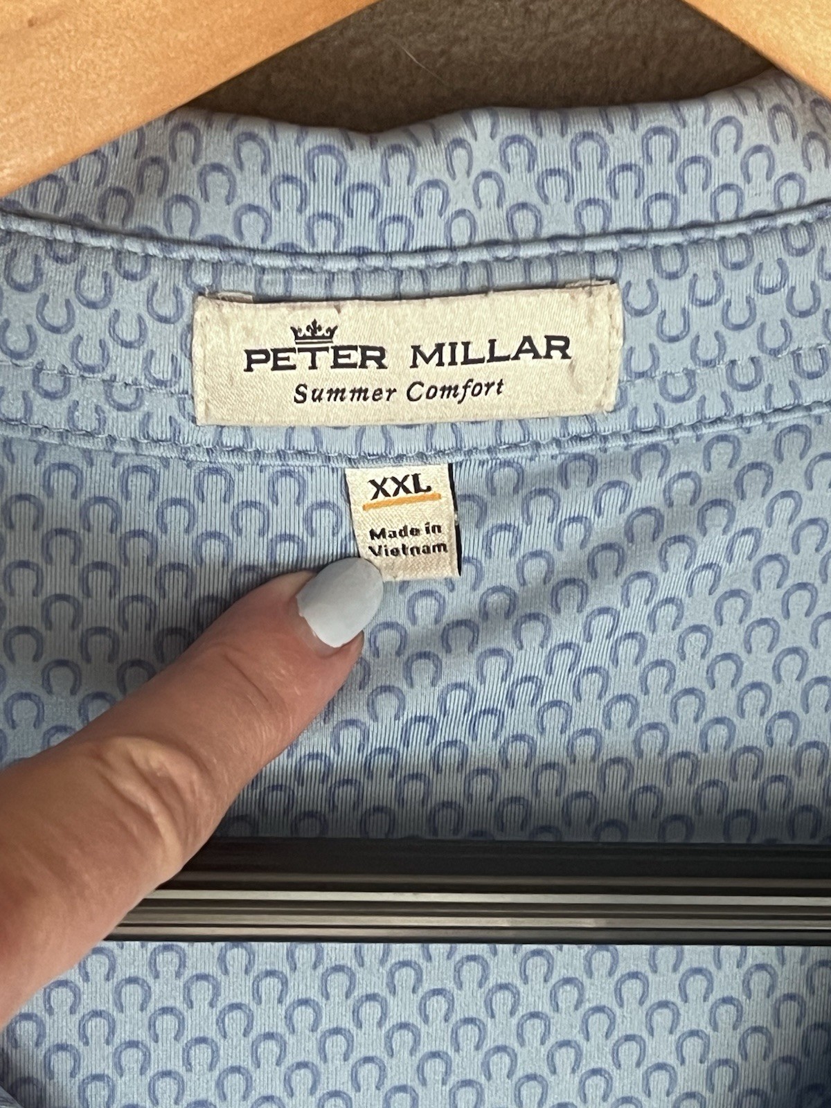 Peter Millar Summer Comfort Polo Golf Shirt Mens XXL Blue Horseshoe Geometric