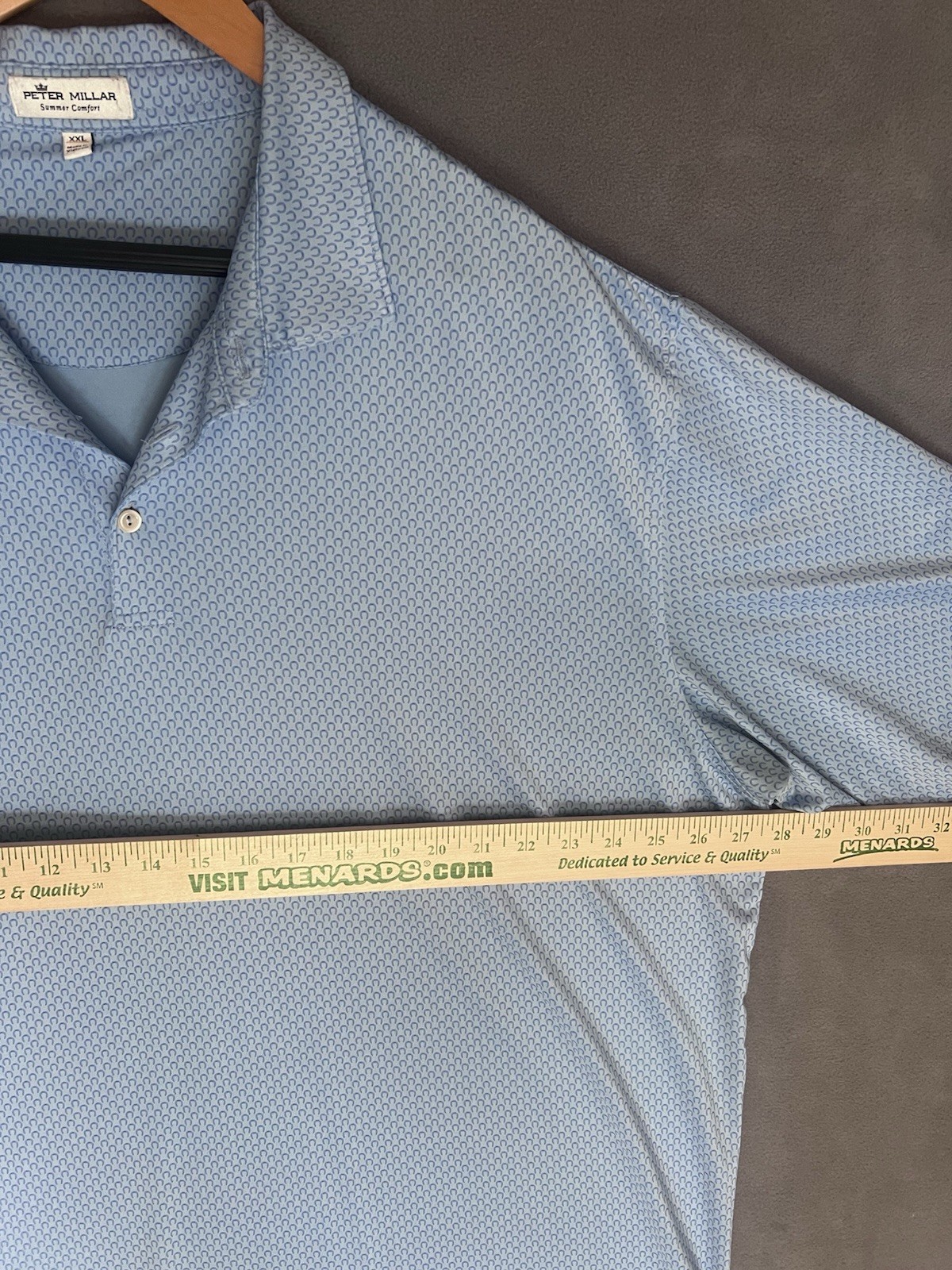 как выглядит Peter Millar Summer Comfort Polo Golf Shirt Mens XXL Blue Horseshoe Geometric фото
