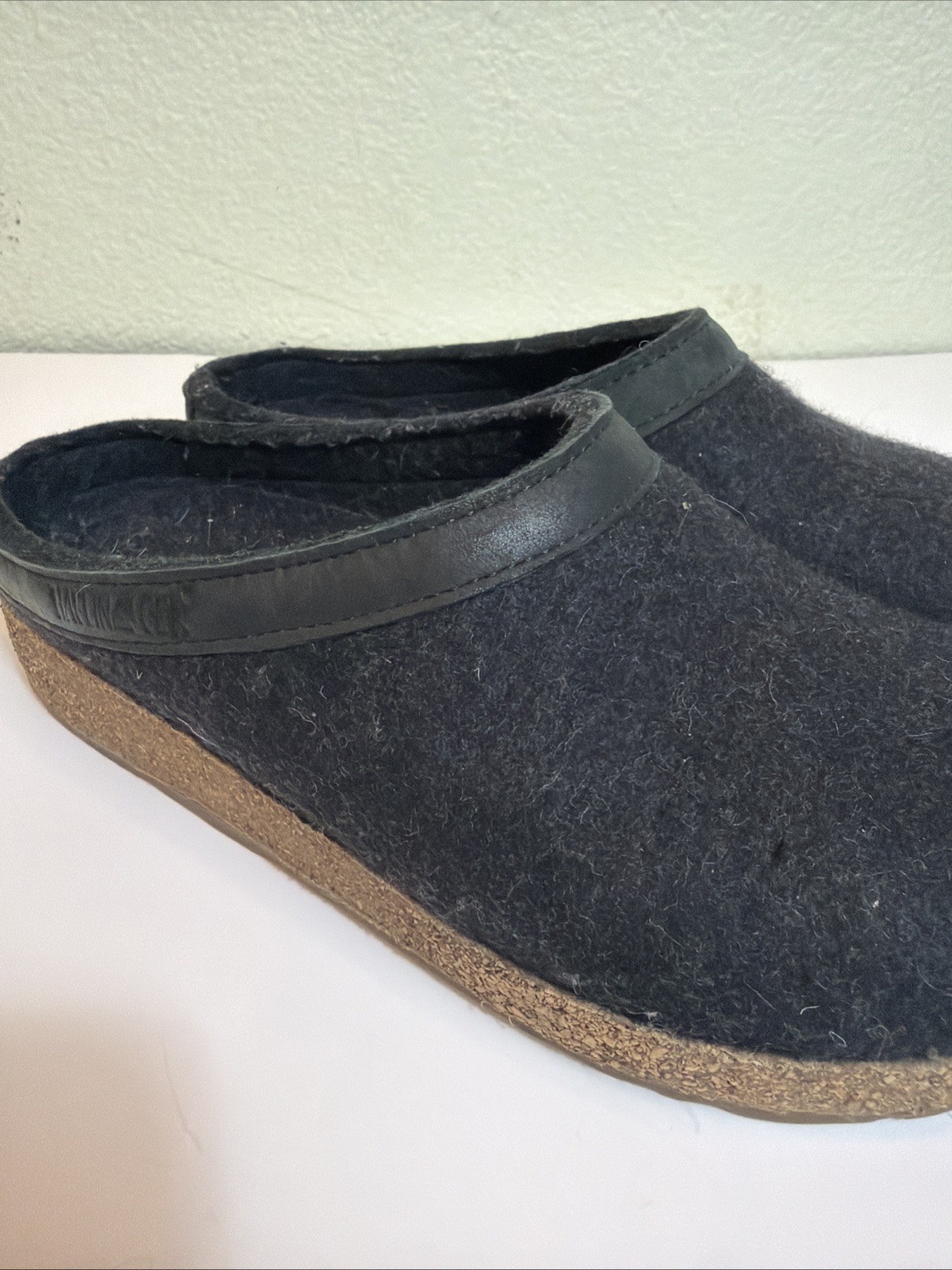 как выглядит Haflinger Womens GRIZZLY Black/ Charcoal Wool Clogs Slippers Sz 36 /US 5 фото