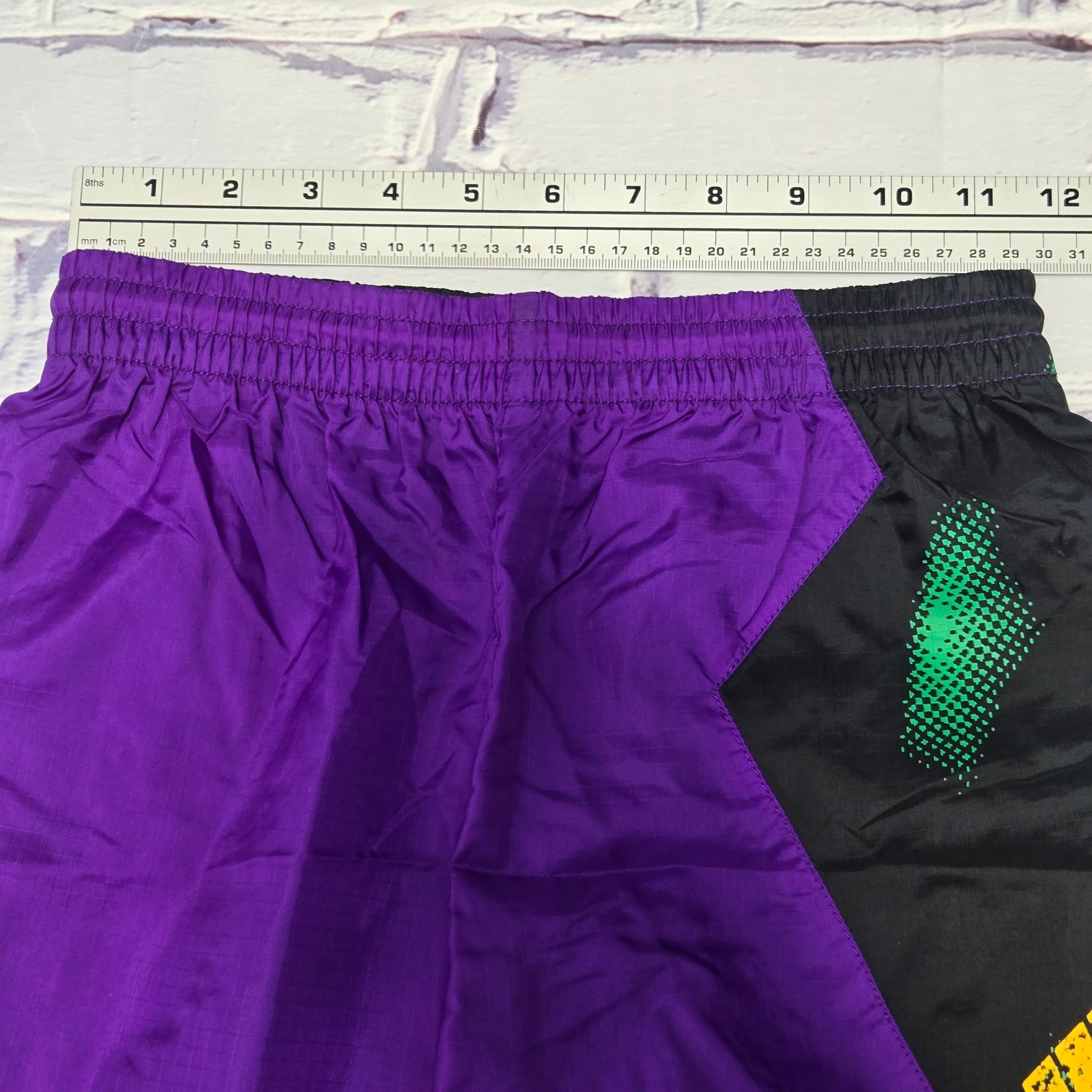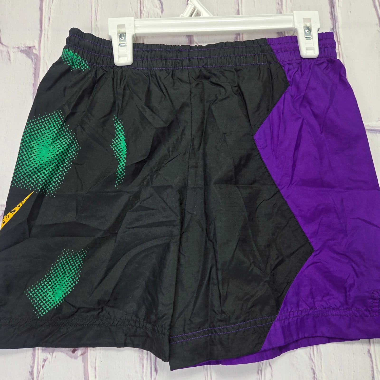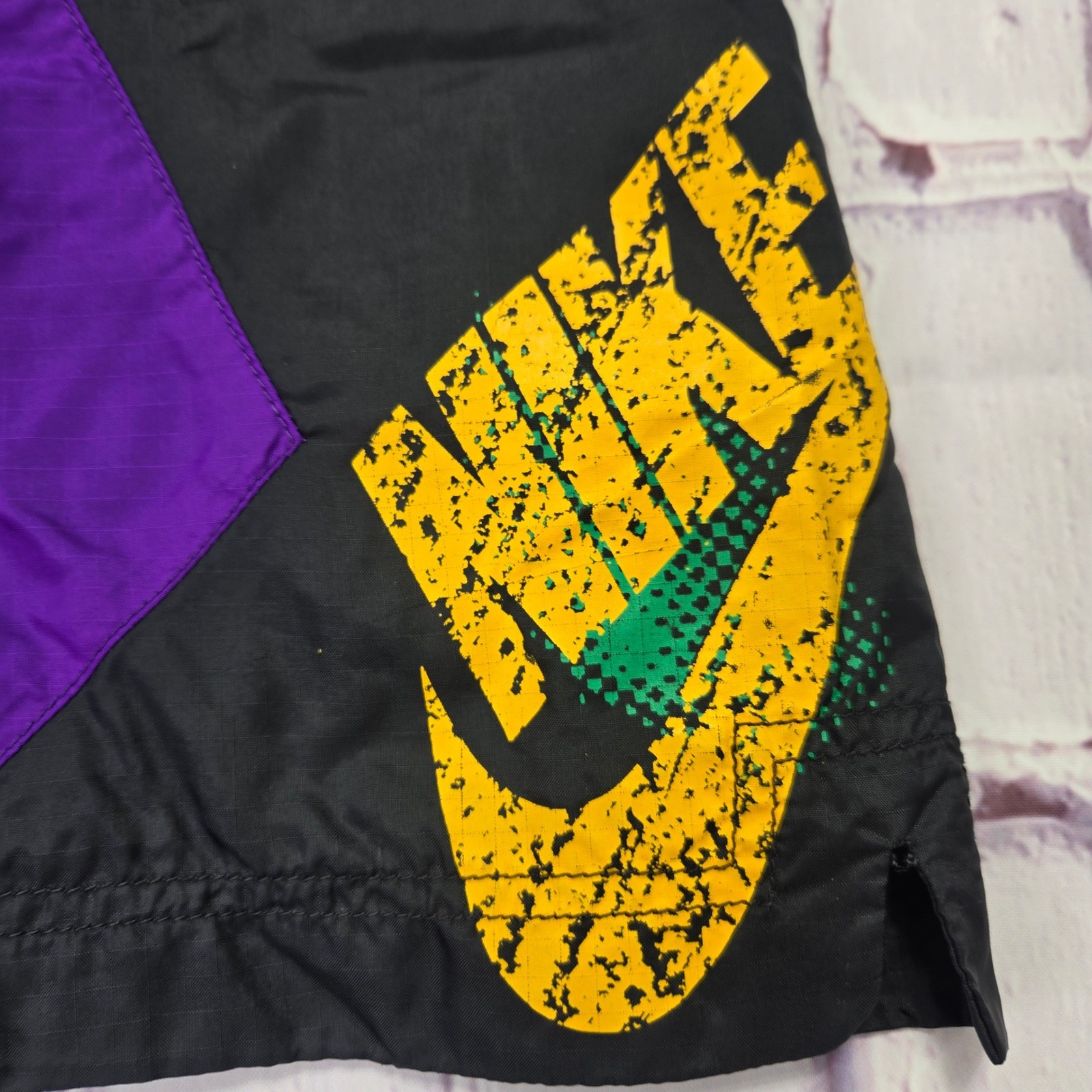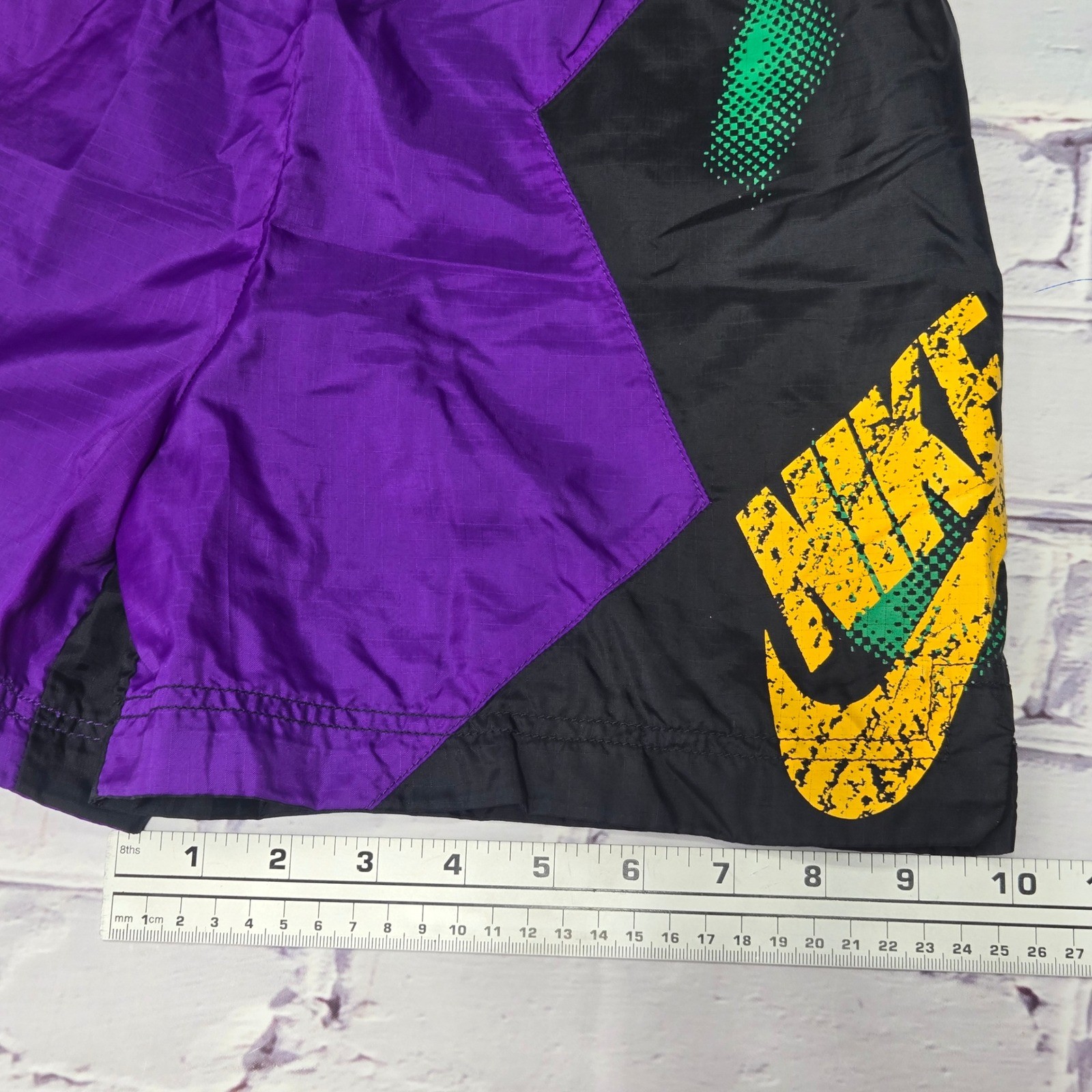 Vintage Nike Shorts kids Sz 8 Purple Black Colorblock Nylon Ripstop 90s Graphic