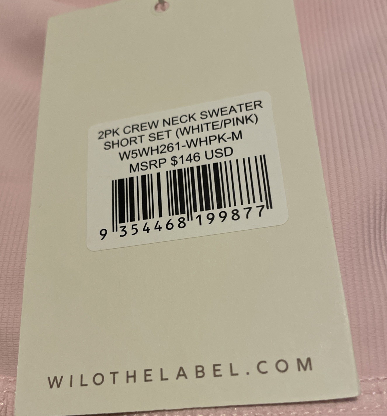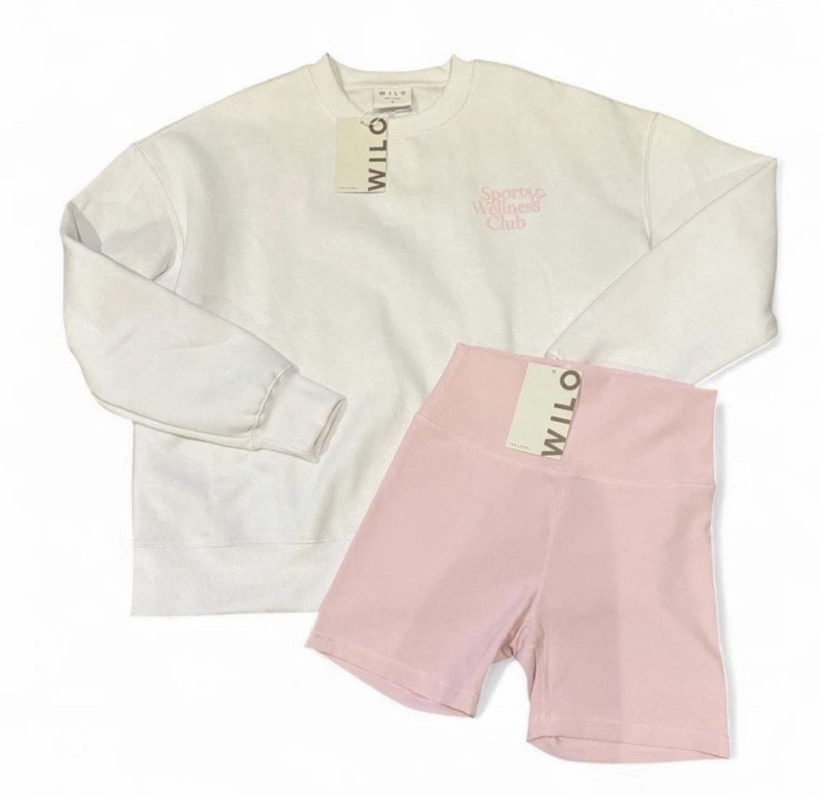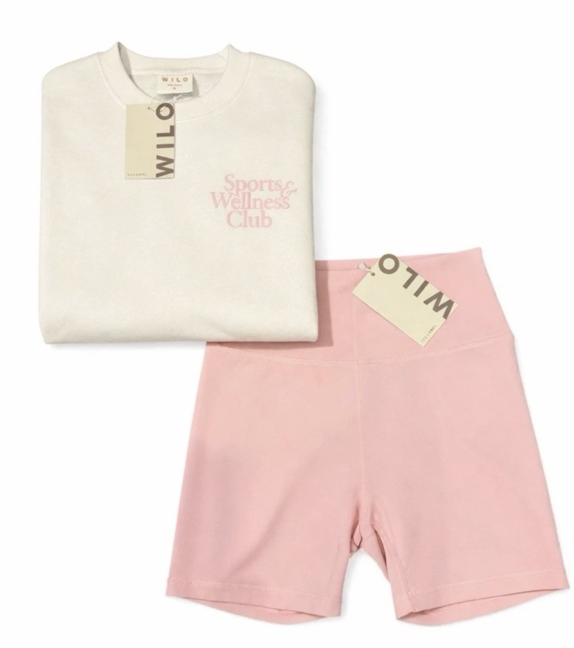 Wilo The Label Wellness Club Small Sweatshirt M Biker Short Set White Pink NWT