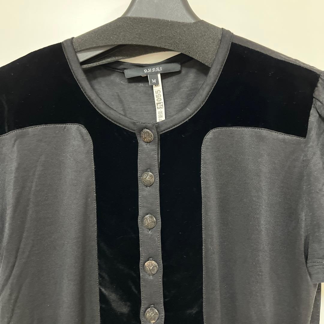 USED GUCCI SHORT-SLEEVED SHIRT, SIZE M, BLACK, VELVET COLLAR GOOD