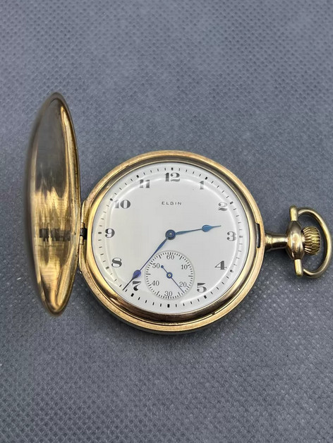 как выглядит Antique 1910s Elgin 15J Hunter Case Pocket Watch Gold Filled Engraved Serviced фото
