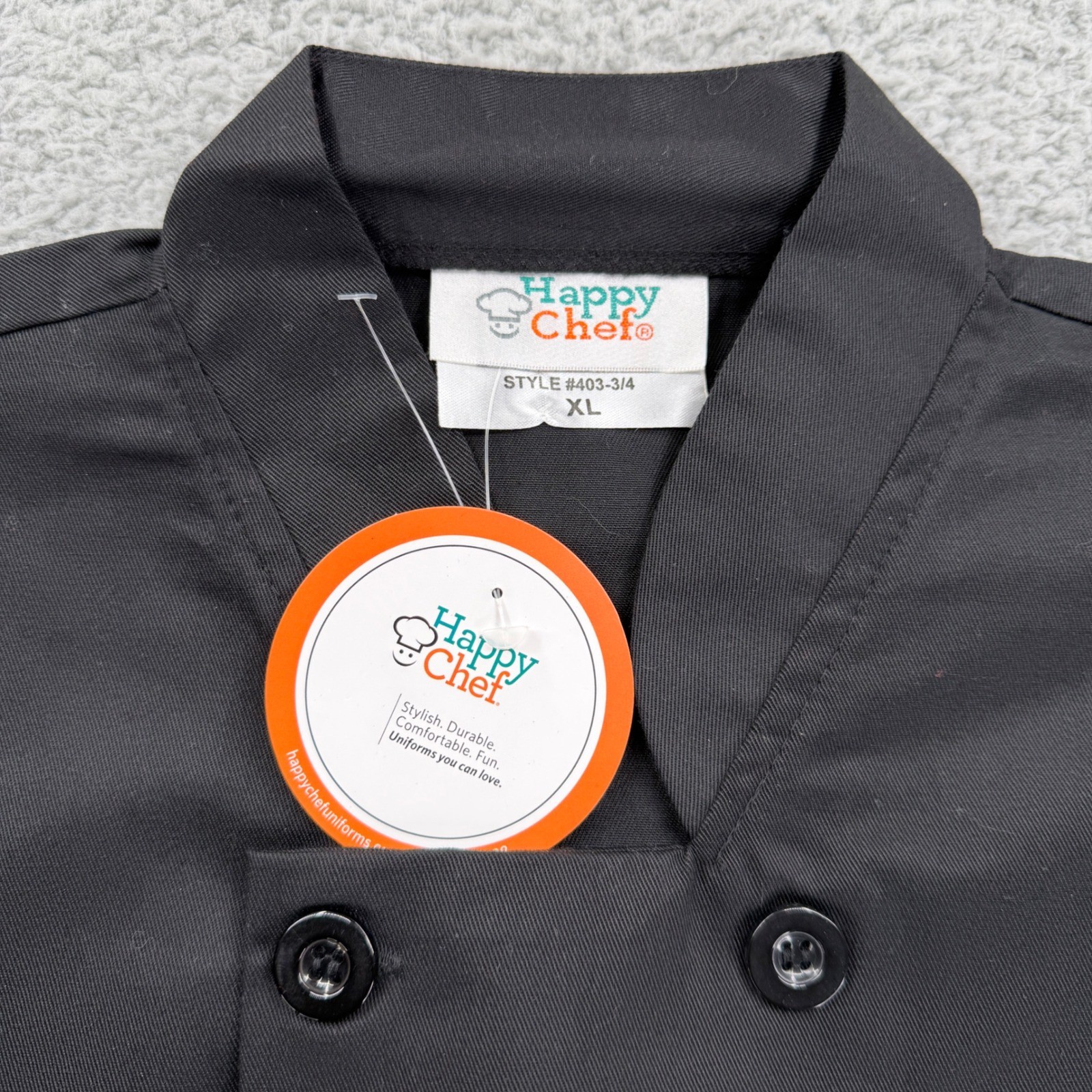 HAPPY CHEF 3/4 Long Sleeve Coat Style 403 Men's Large Black New Buttons