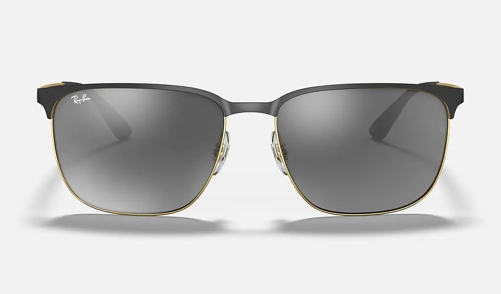 как выглядит Ray-Ban Black On Gold/Grey Gradient Mirror 59 mm Sunglasses RB3569 187/88 59-17 фото