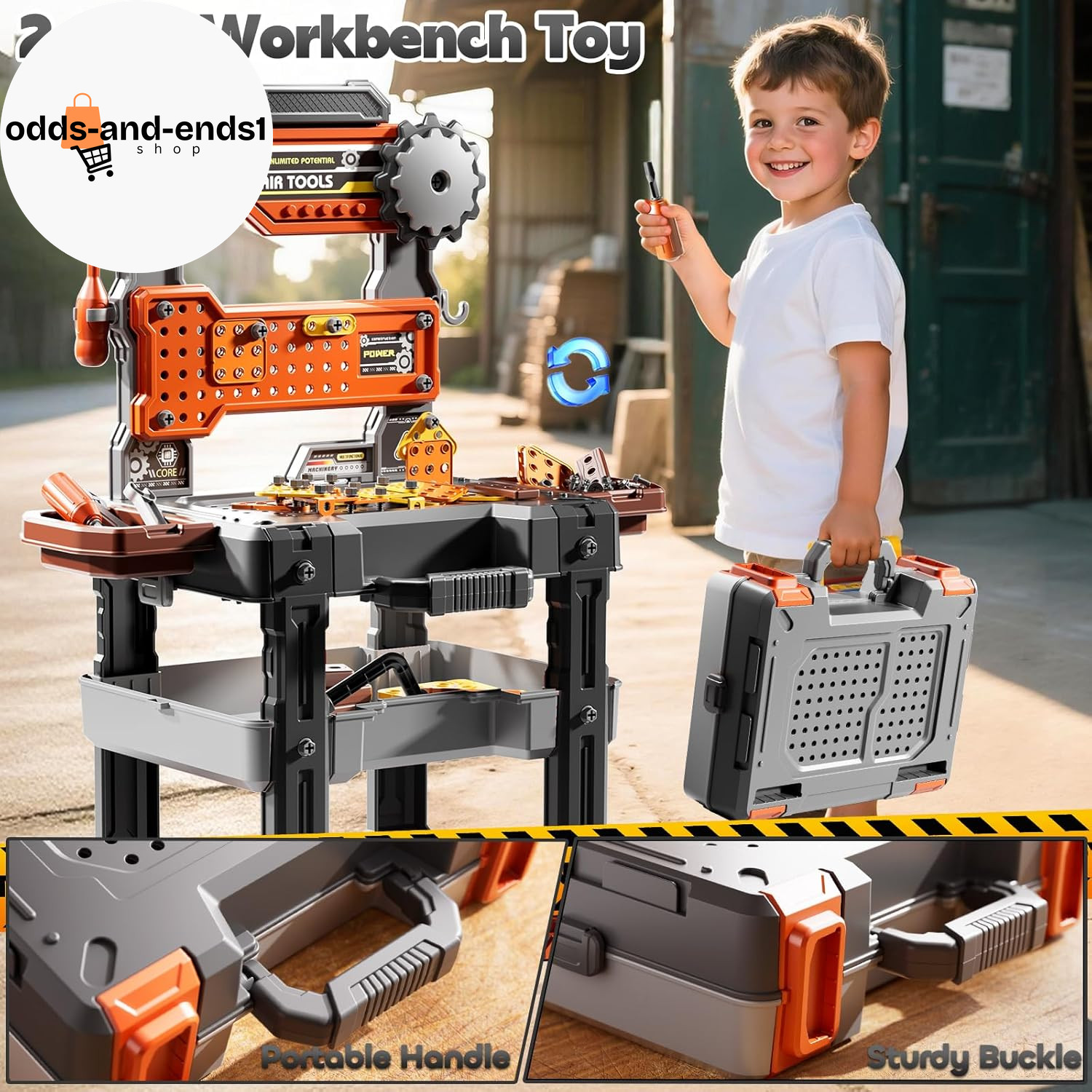 как выглядит 2 in 1 Workbench Tools Toys Set with Sound for Toddlers Aged 3-5, 145 PCS Educat фото