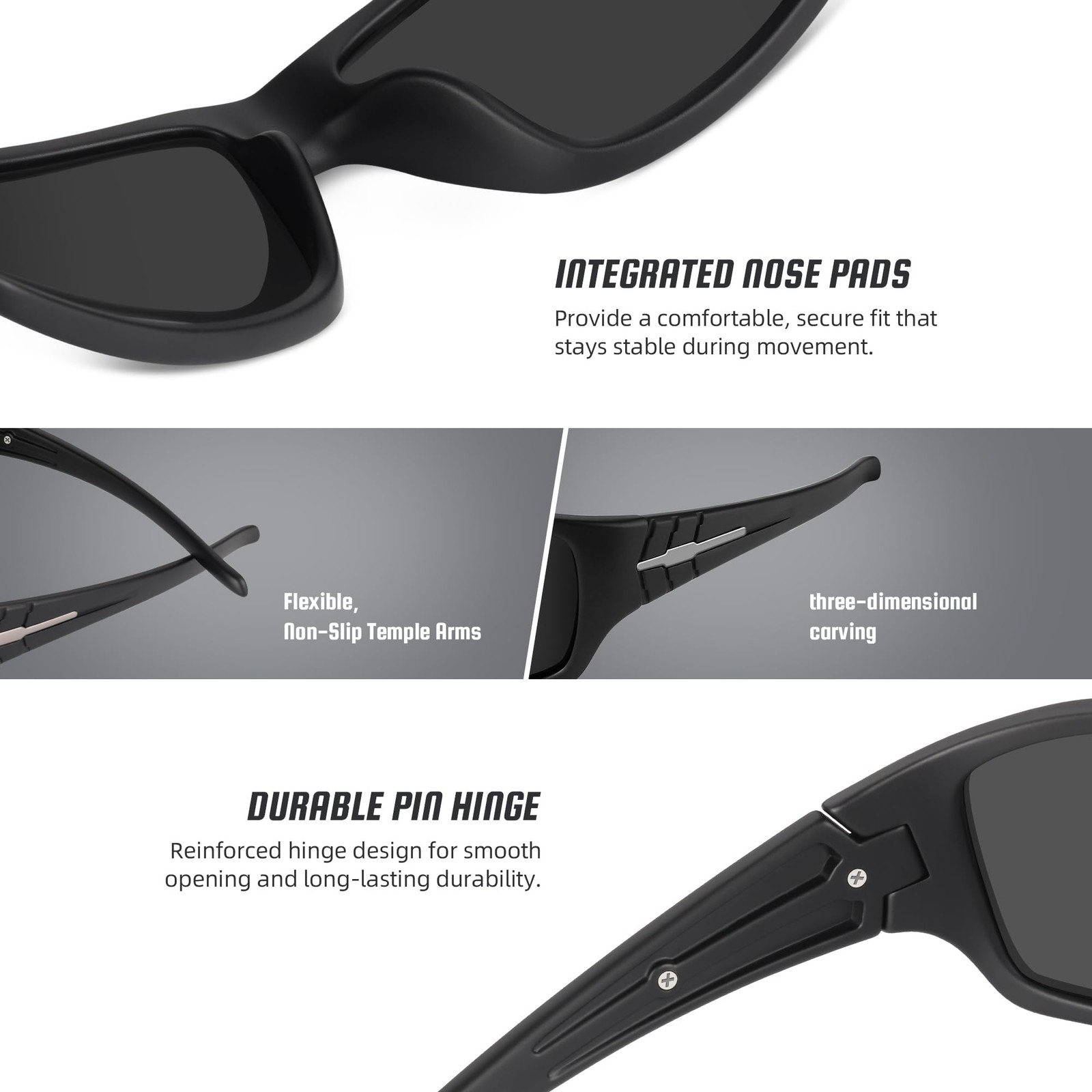 Polarized Sports Sunglasses for Men, Wrap Around Sun Glasses UV Protection fo...