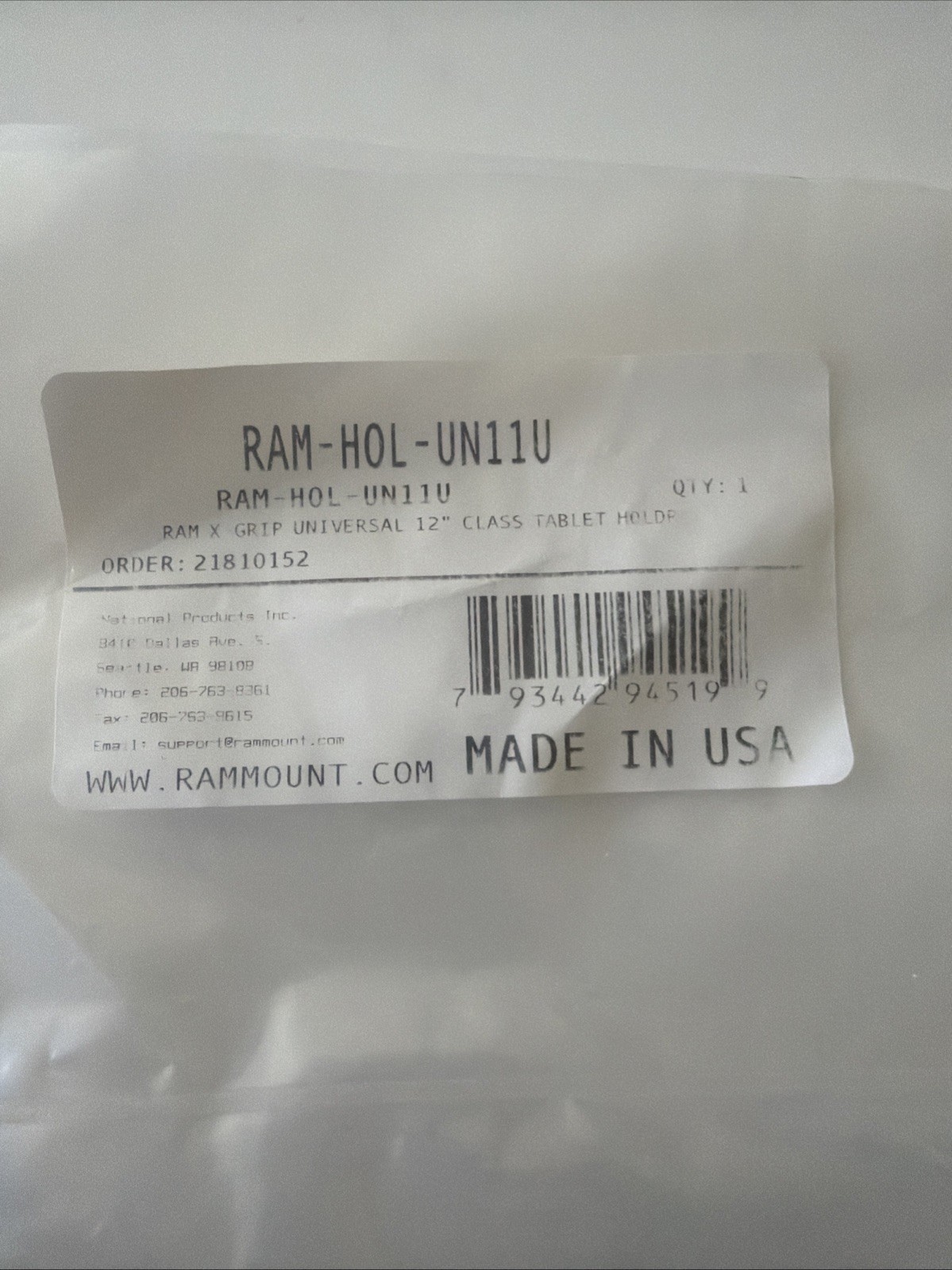 Модель: RAM-HOL-UN11U